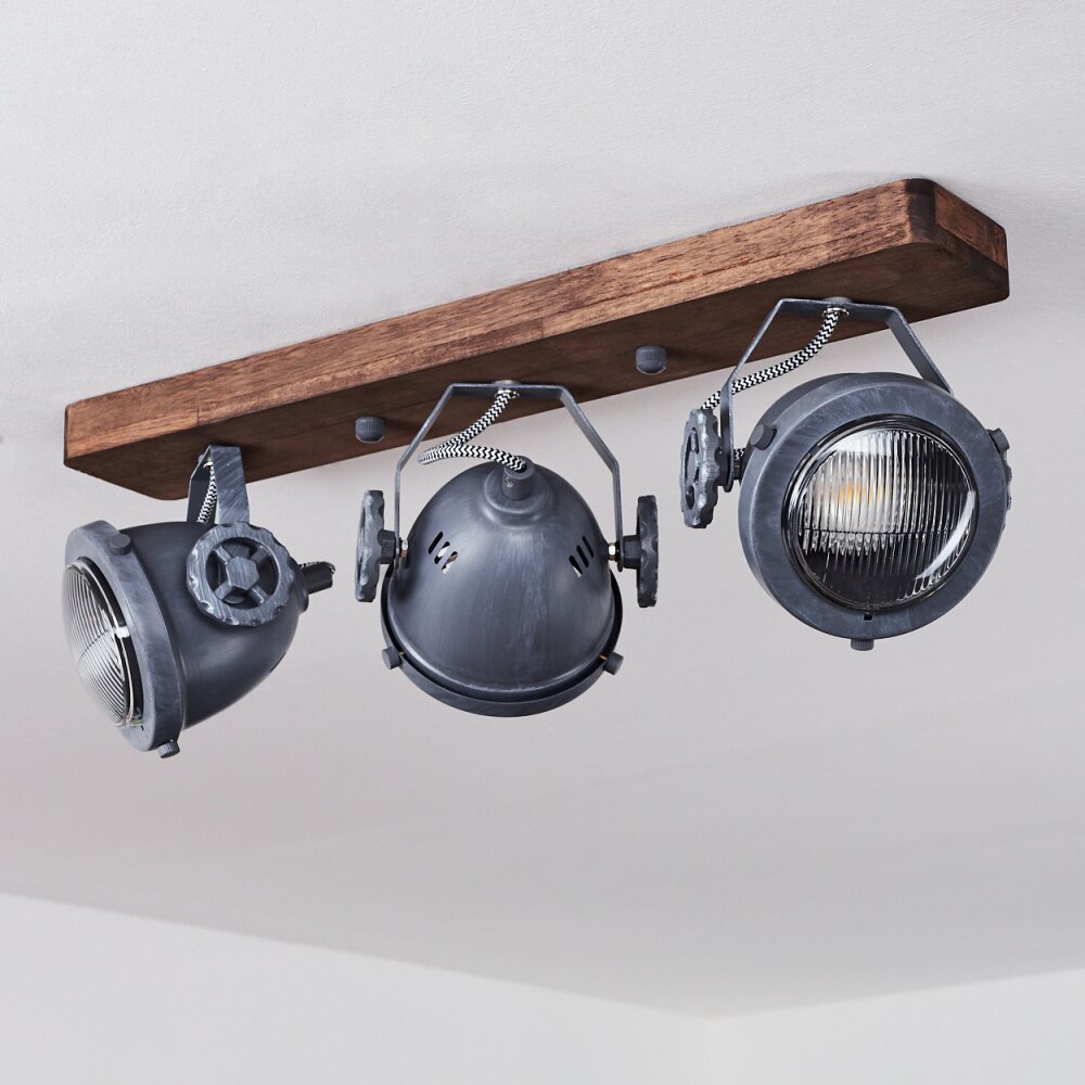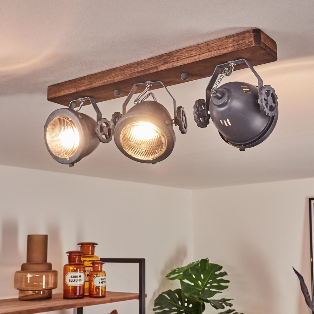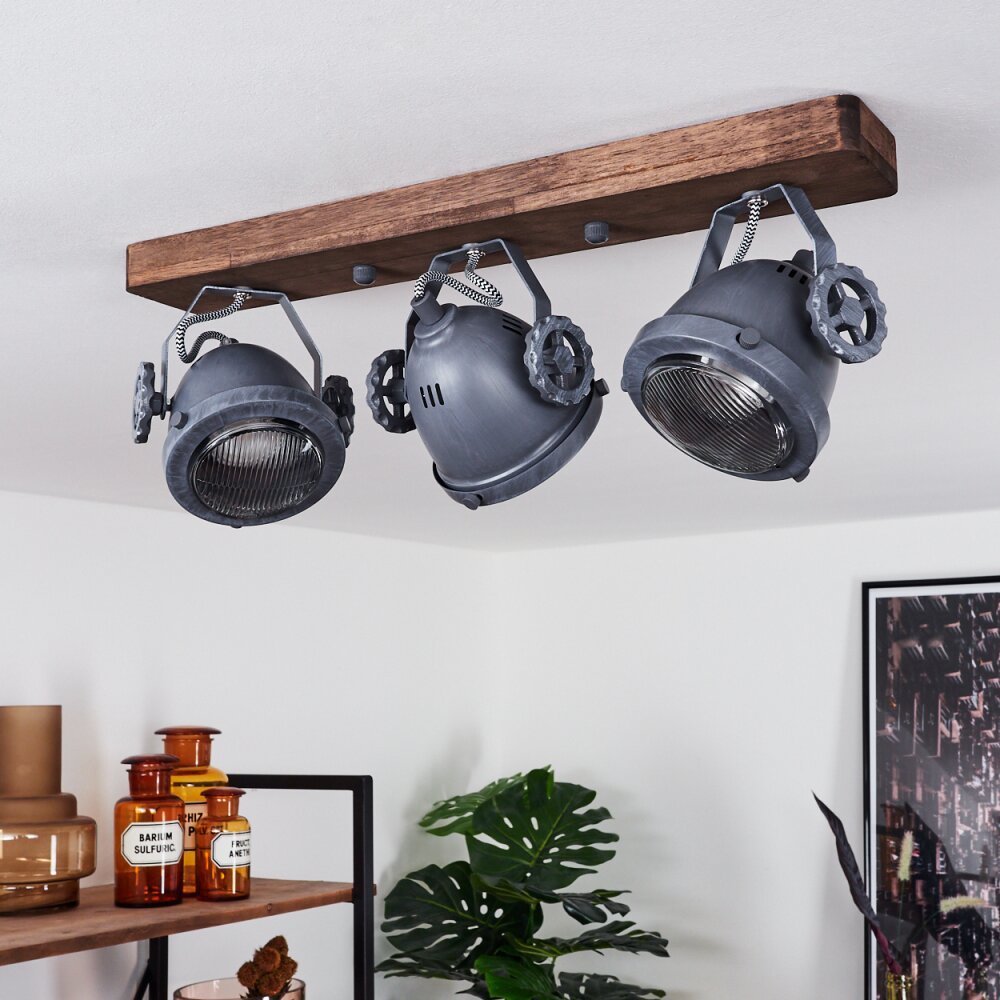 Herford Plafondlamp Grijs, Hout donker, 3-lichts