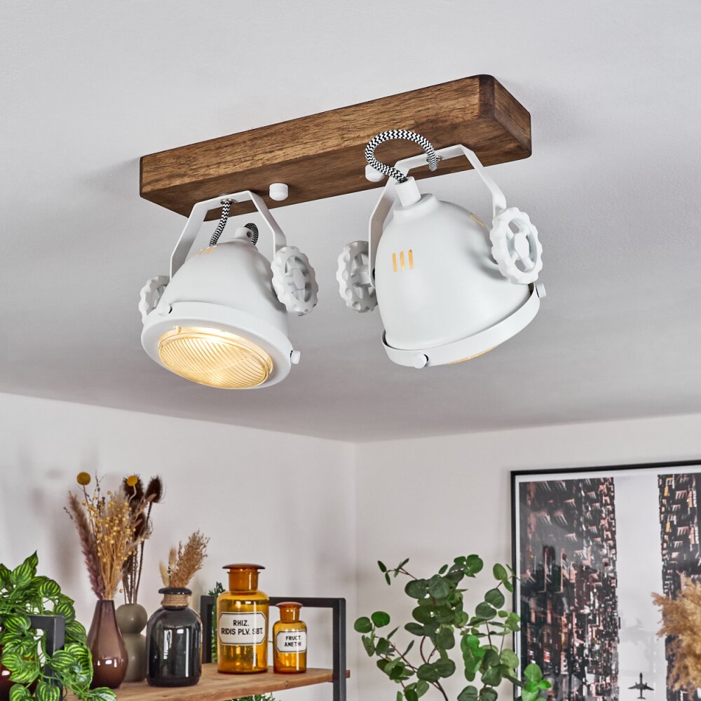 Herford Plafondlamp Bruin, Natuurlijke kleuren, Wit, 2-lichts