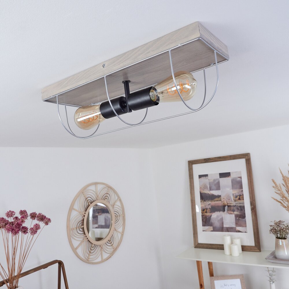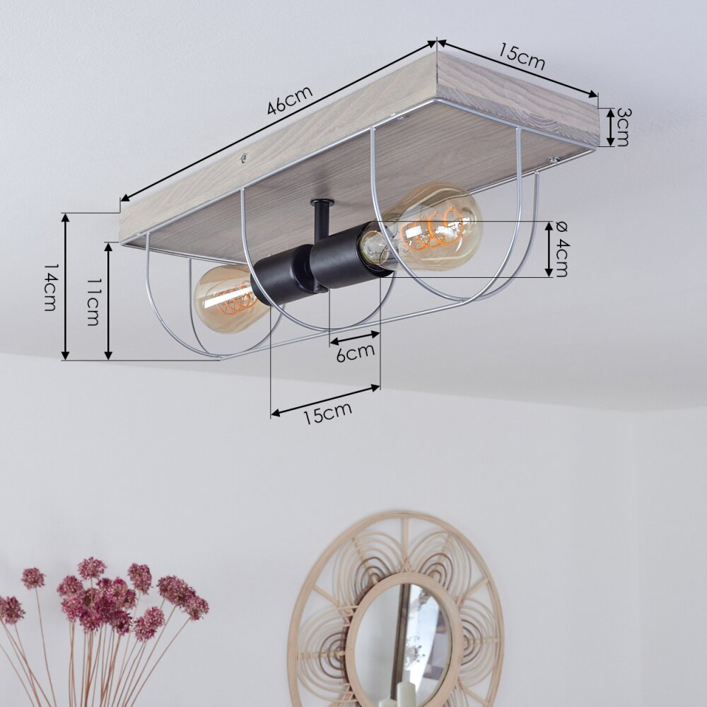 Hodne Plafondlamp Grijs, Natuurlijke kleuren, Zwart, 2-lichts