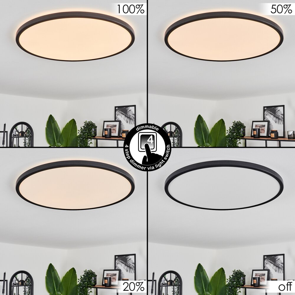 Goran Plafondlamp, Paneel LED Zwart, Wit, 1-licht, Afstandsbediening