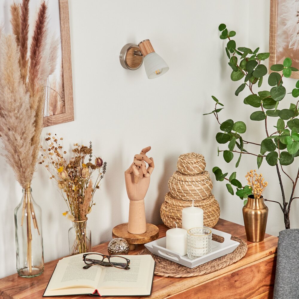 Icalma Muurlamp Hout licht, Nikkel mat, 1-licht