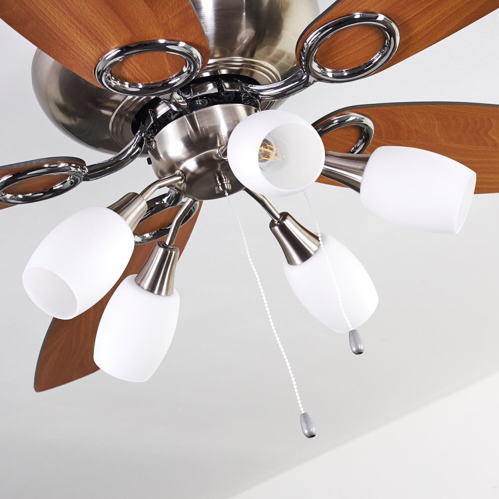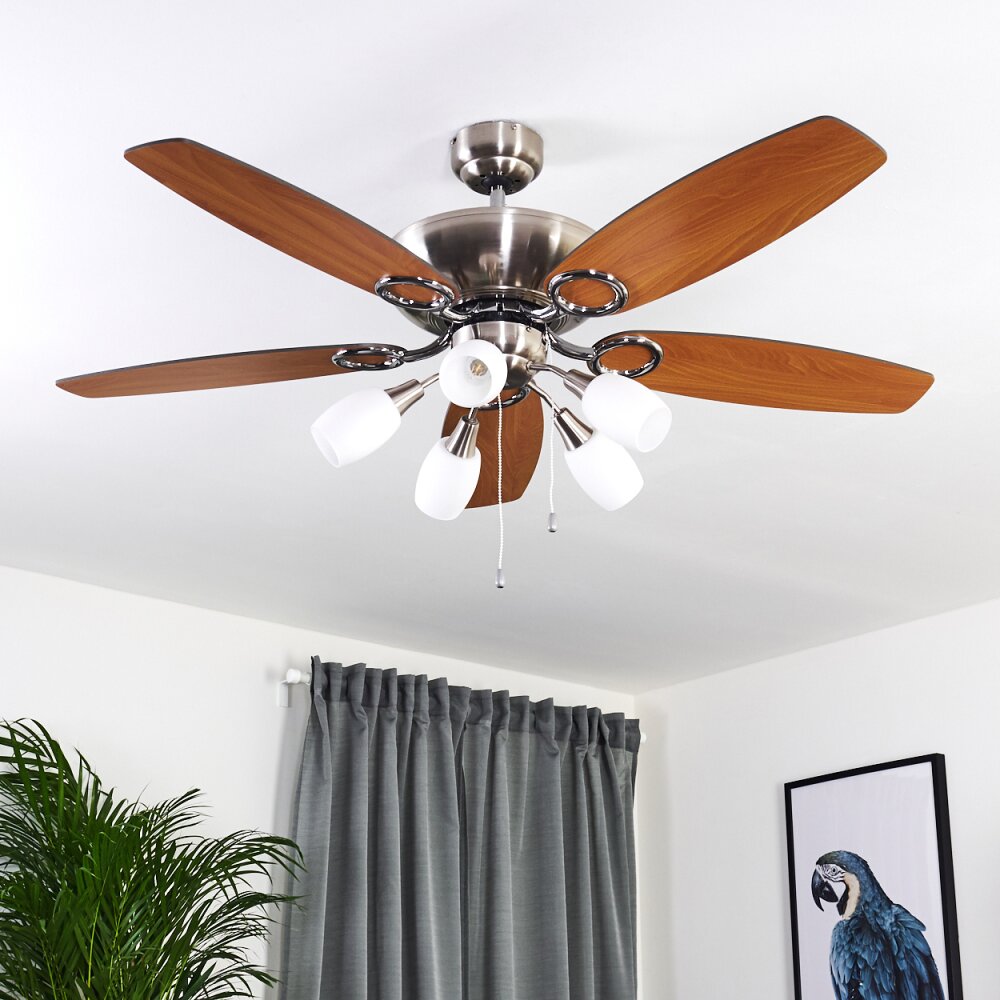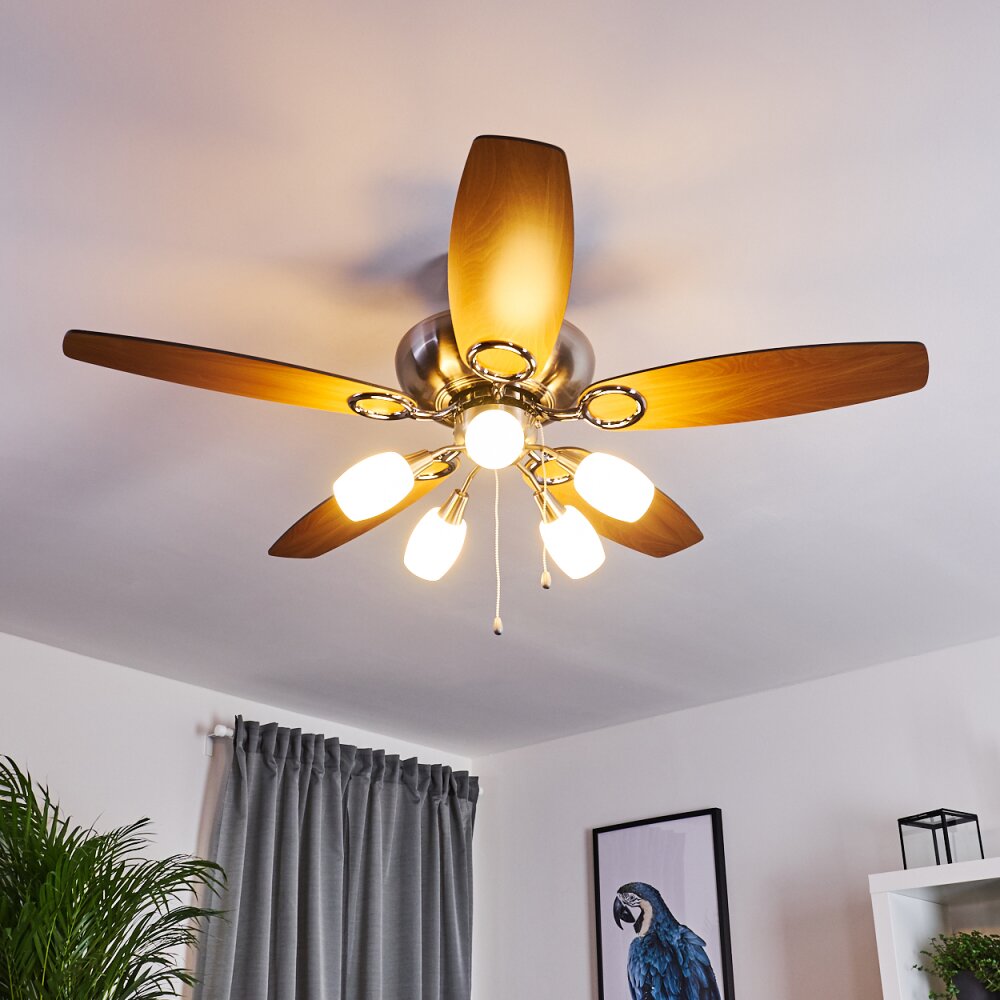 Irving plafondventilator Chroom, Grijs, Hout licht, 5-lichts
