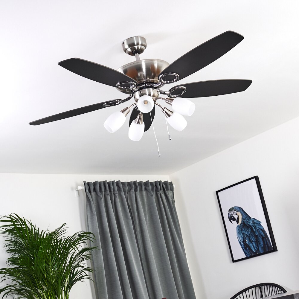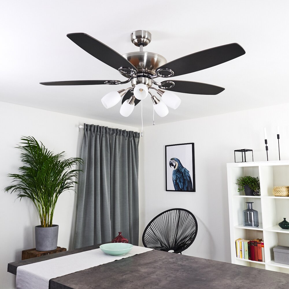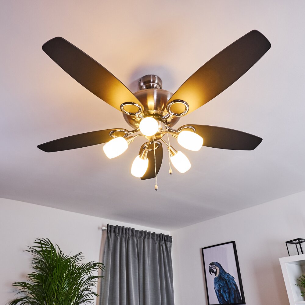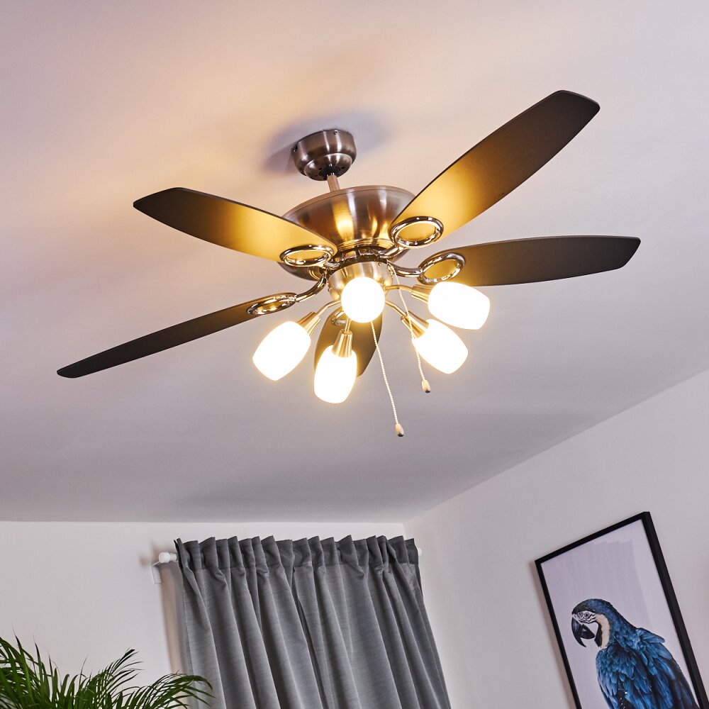 Irving plafondventilator Chroom, Grijs, Hout licht, 5-lichts