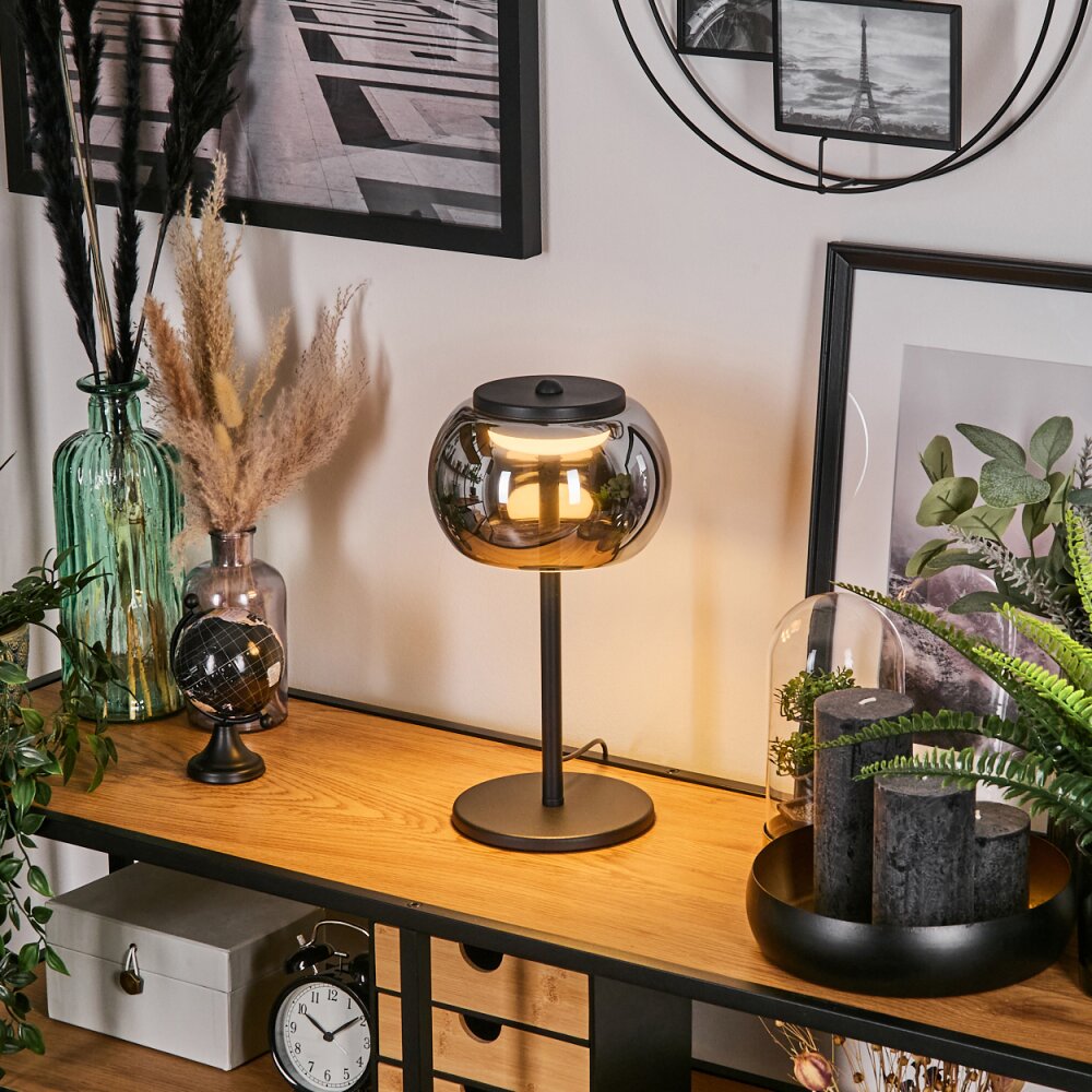 Telhais Tafellamp, Leeslamp Chroom, Rookkleurig, Zwart, 1-licht