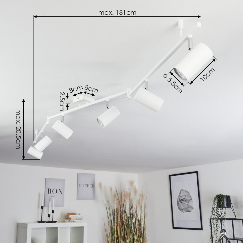 Javel Plafondlamp Chroom, Wit, 6-lichts