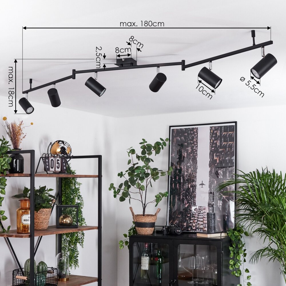 Javel Plafondlamp Chroom, Zwart, 6-lichts