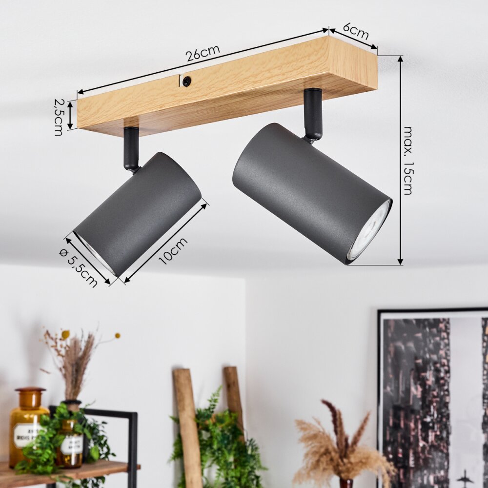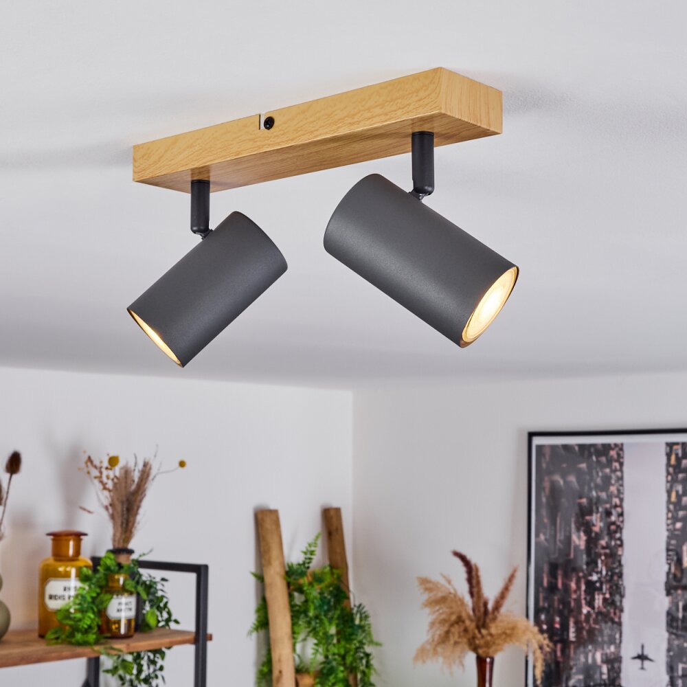 Javel Plafondlamp houtlook, Zwart, 2-lichts