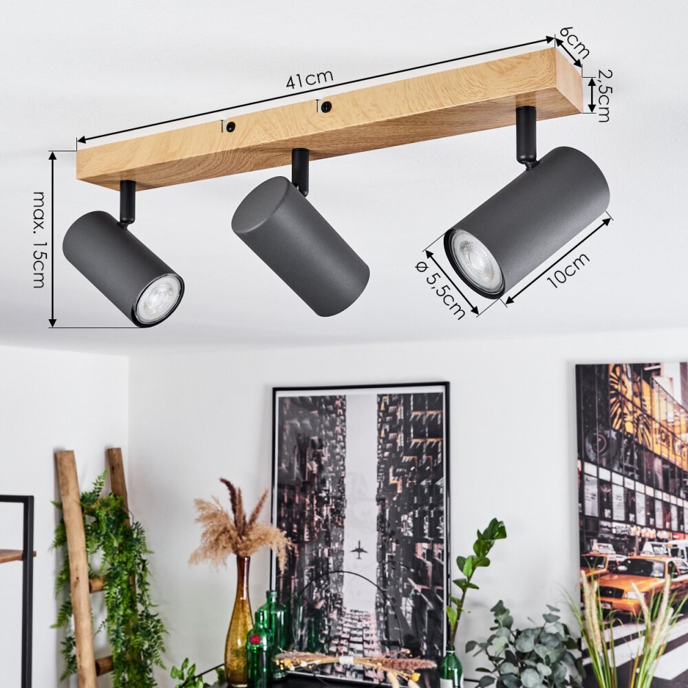 Javel Plafondlamp houtlook, Zwart, 3-lichts