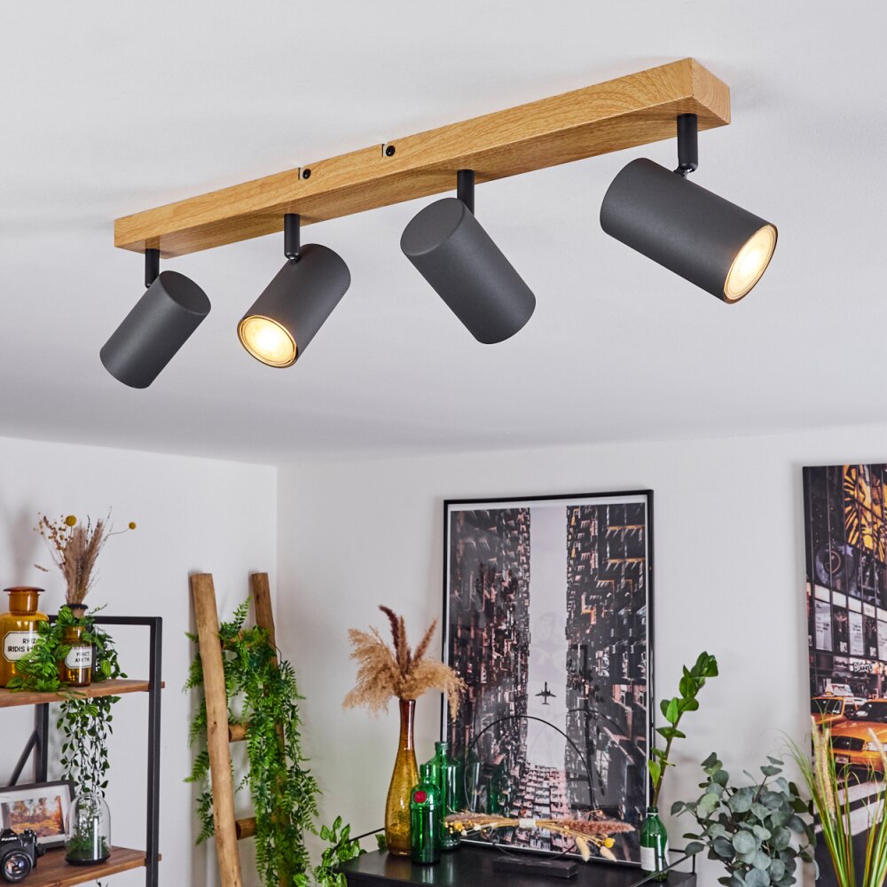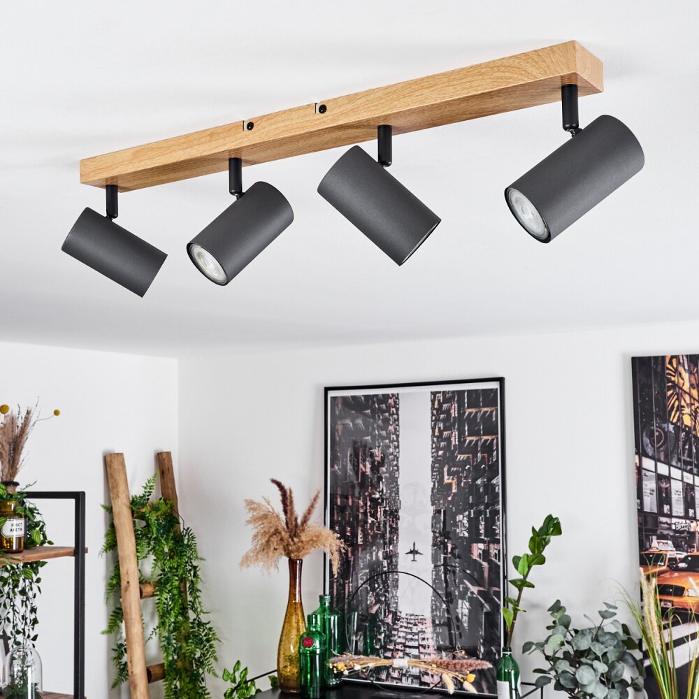 Javel Plafondlamp houtlook, Zwart, 4-lichts