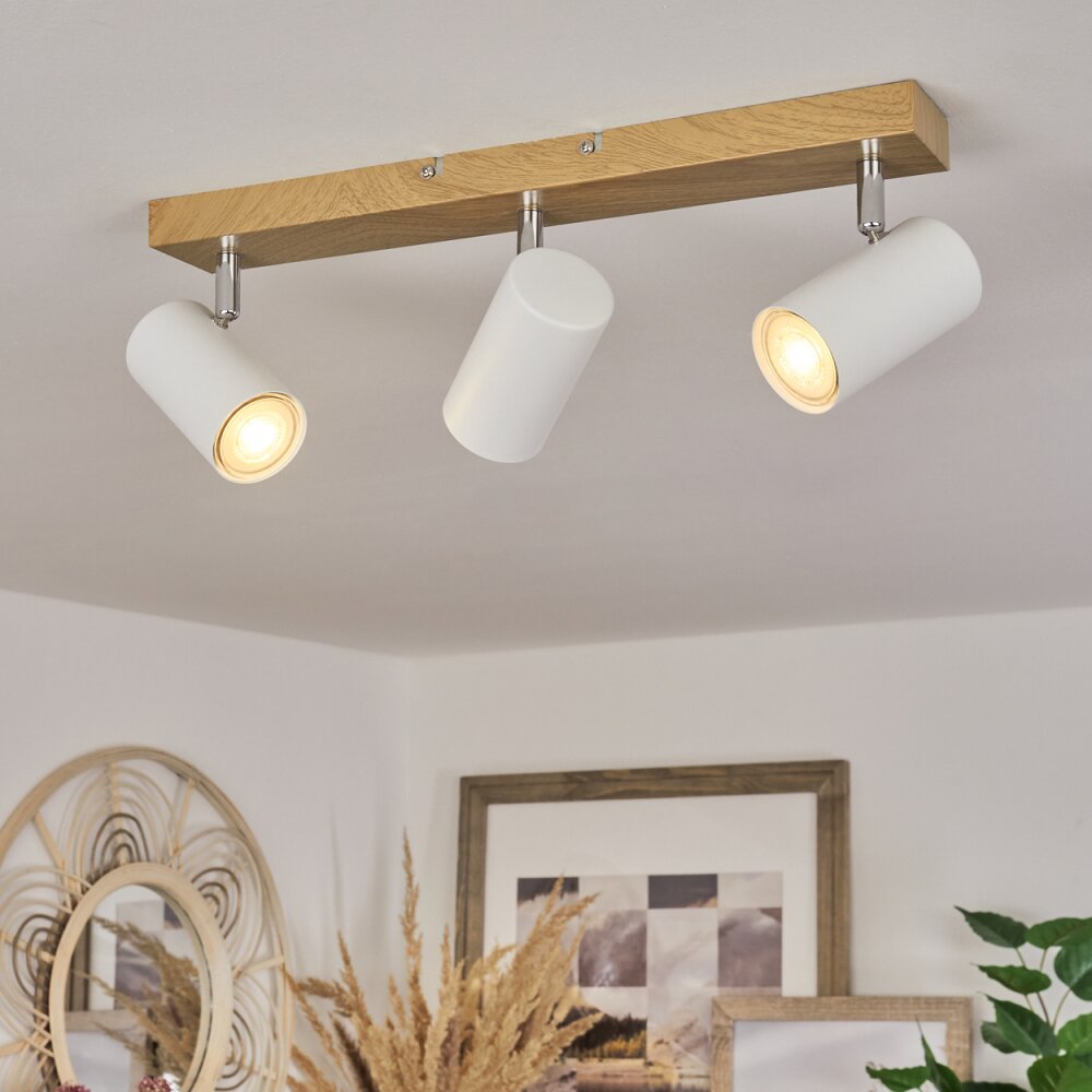 Javel Plafondlamp Bruin, Chroom, houtlook, 3-lichts