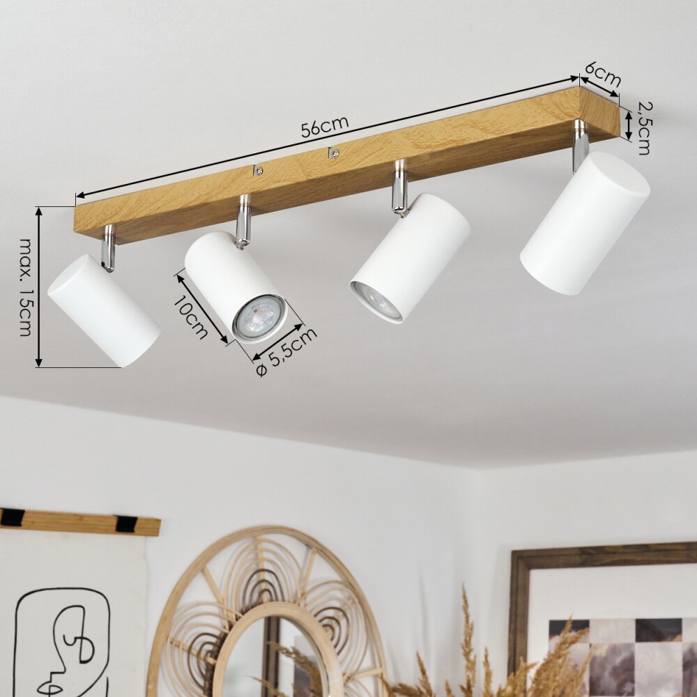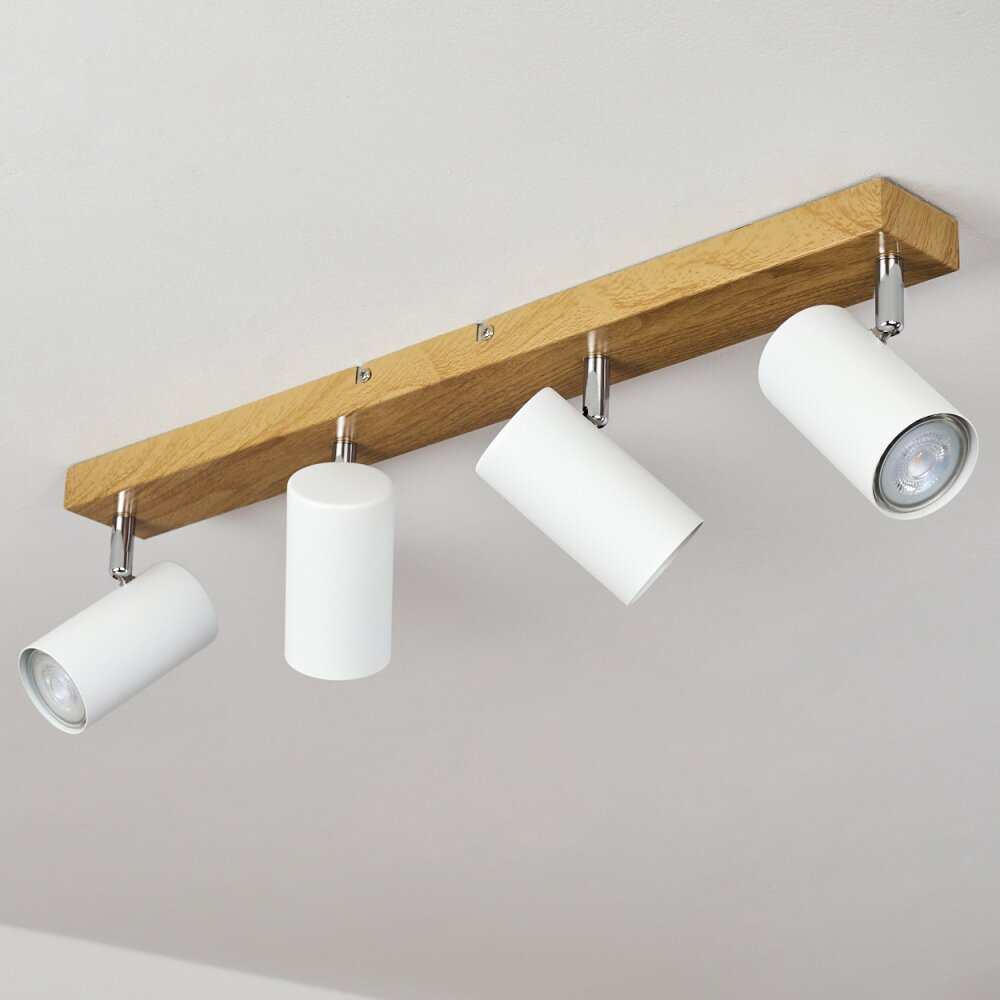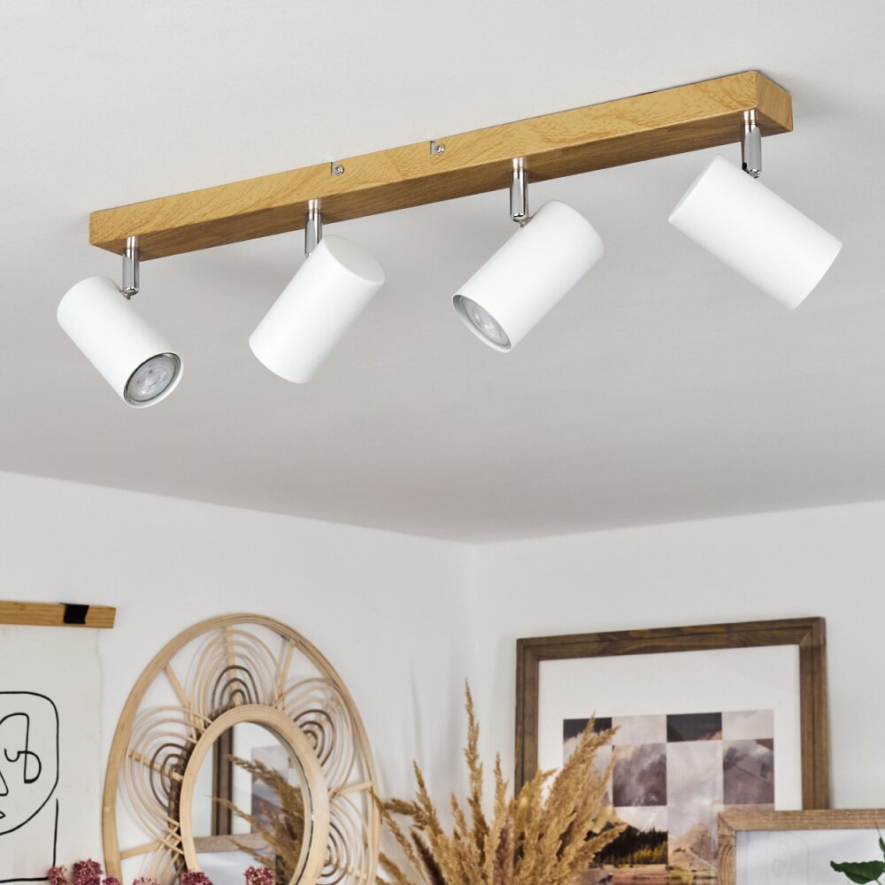 Javel Plafondlamp Bruin, Chroom, houtlook, 4-lichts