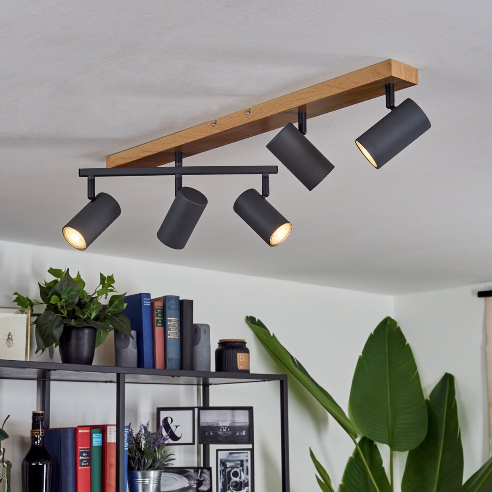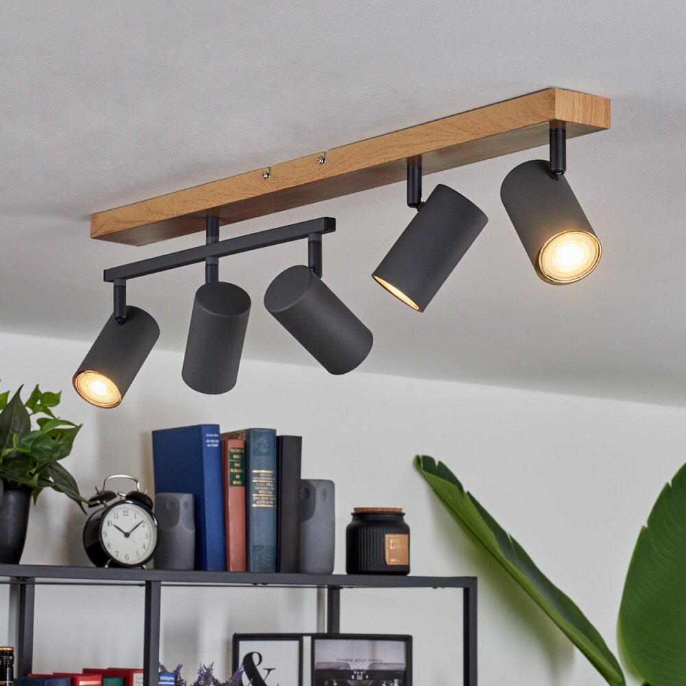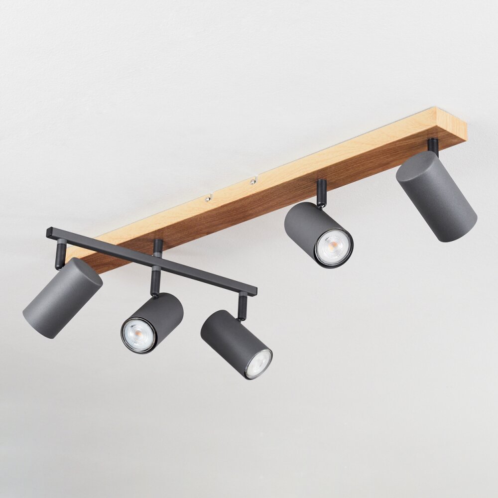 Javel Plafondlamp Antraciet, houtlook, 5-lichts