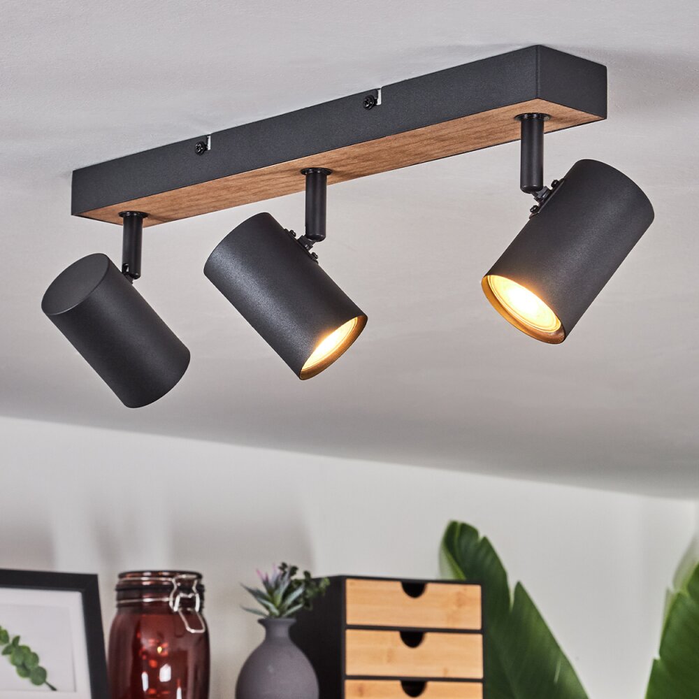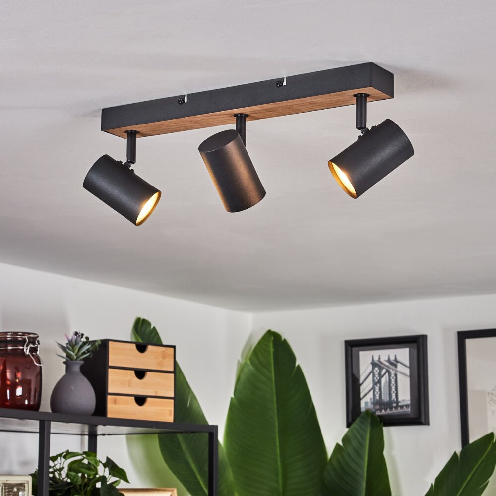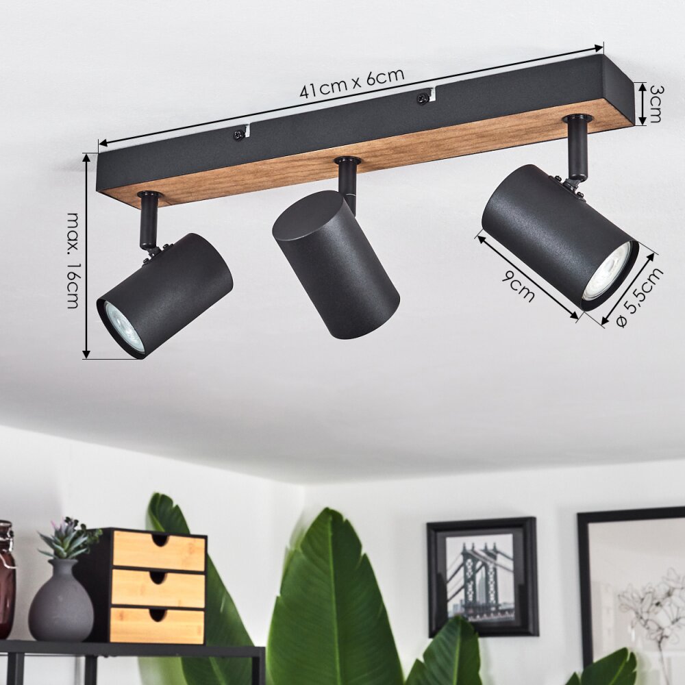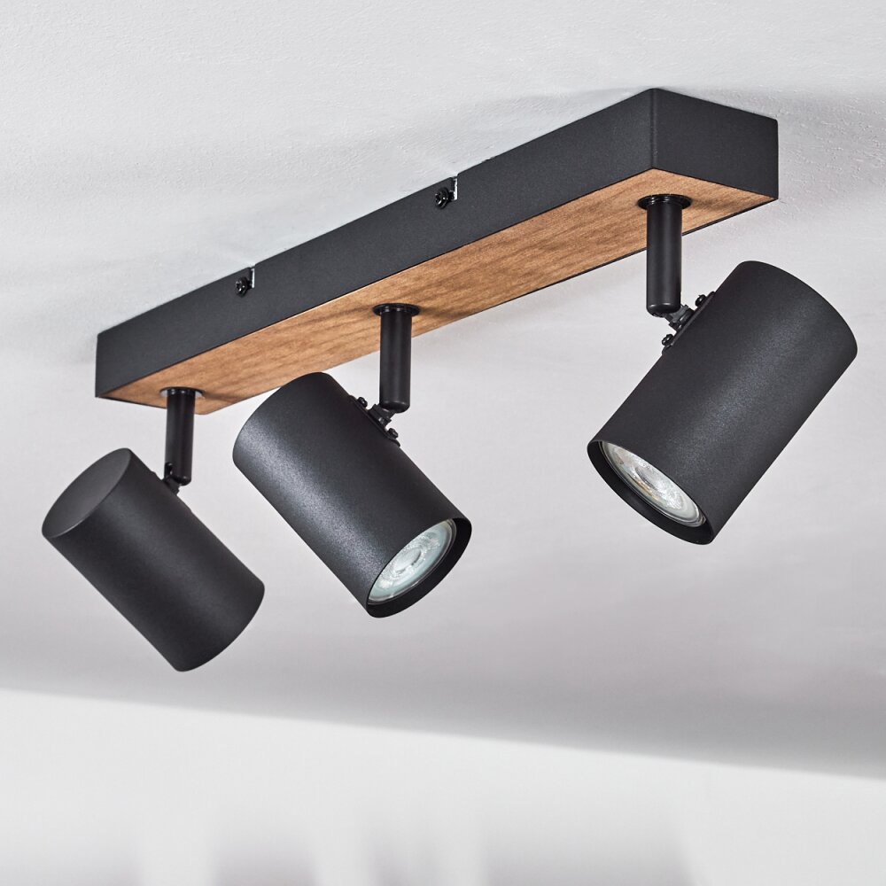 Javel Plafondlamp Bruin, houtlook, Zwart, 3-lichts