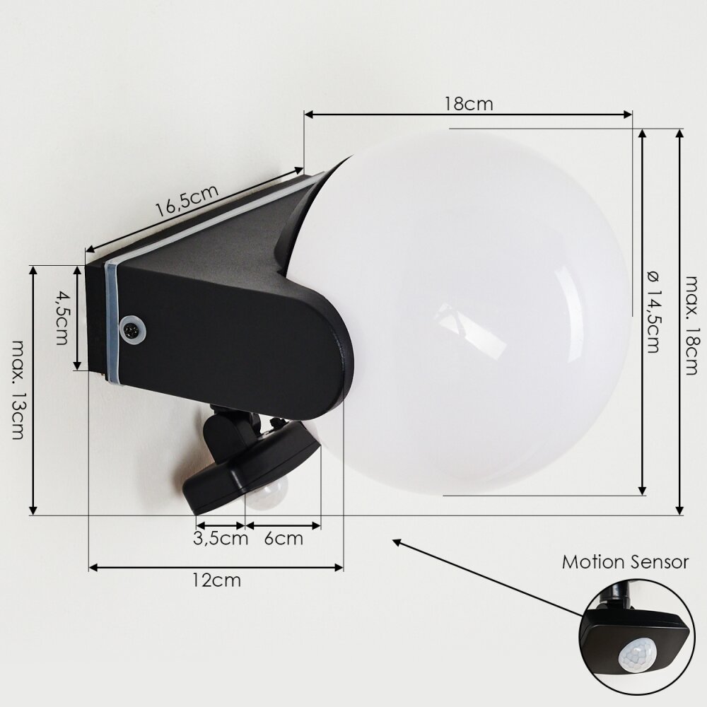 Kalfhaga Buiten muurverlichting Zwart, Wit, 1-licht, Bewegingsmelder