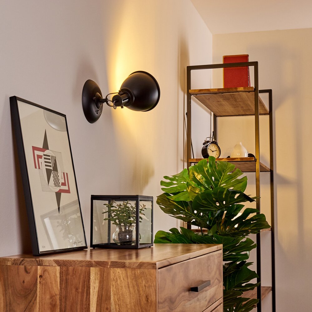 Bolderslev Muurlamp Chroom, Zwart, 1-licht