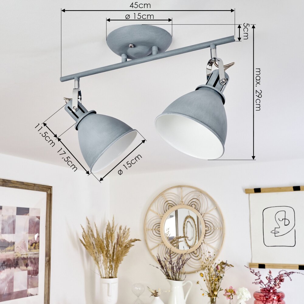Javel Plafondlamp, Plafondspot Chroom, Grijs, 2-lichts