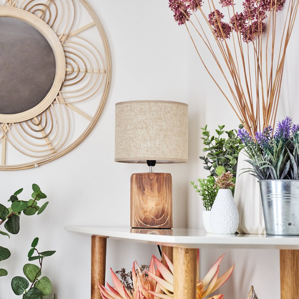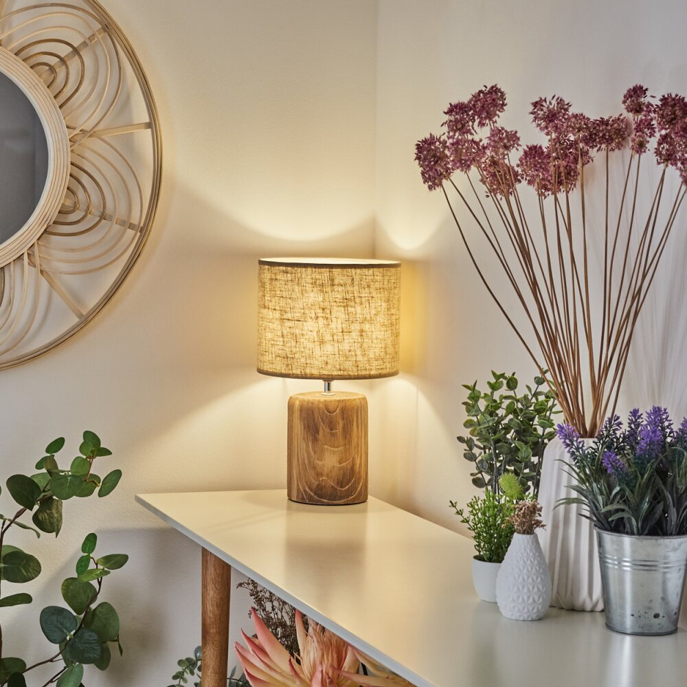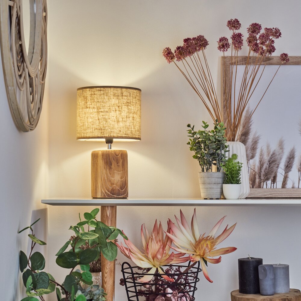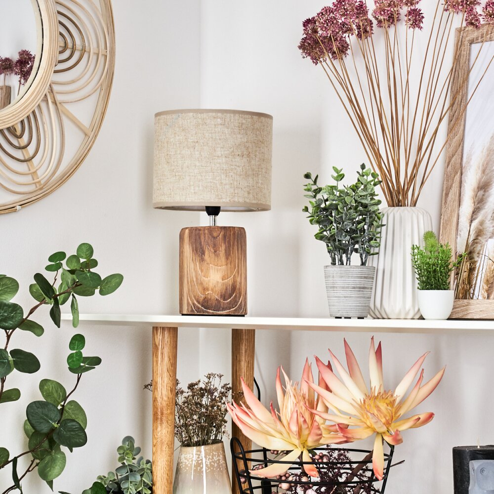 Korhola Tafellamp Bruin, Chroom, houtlook, 1-licht