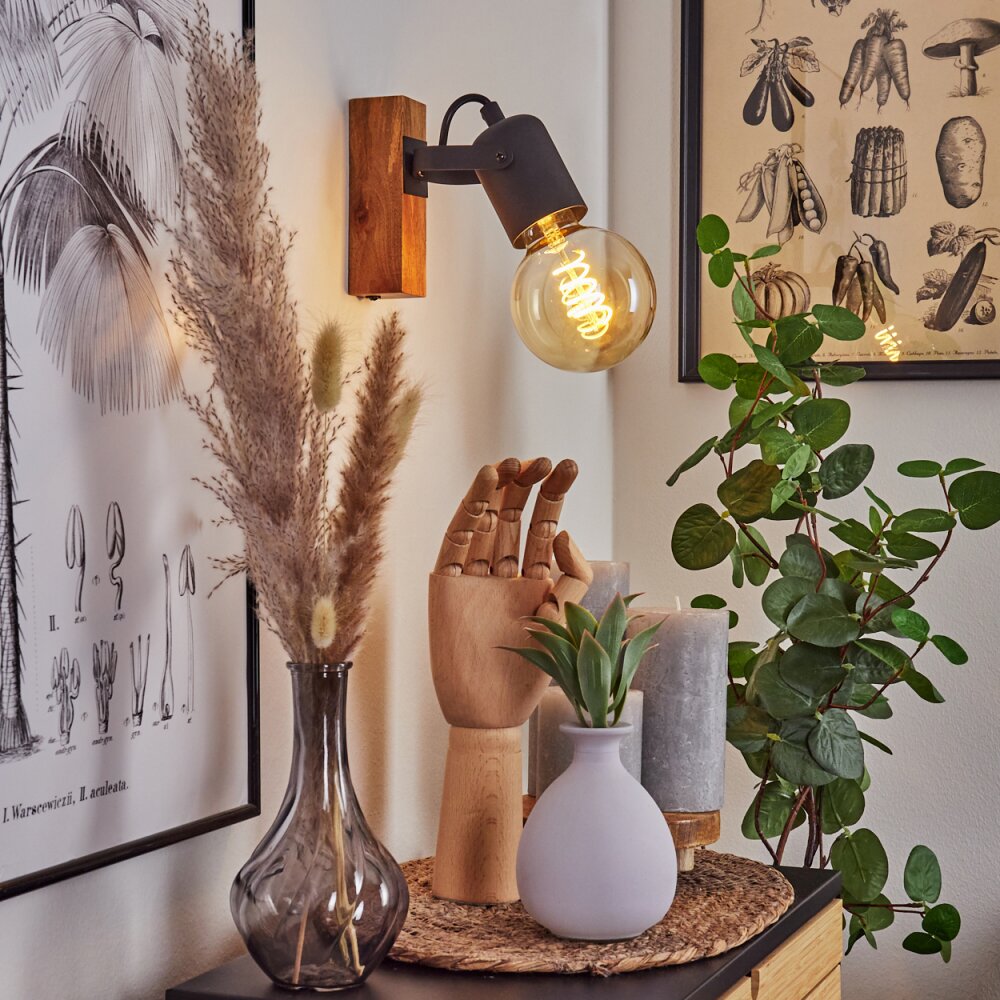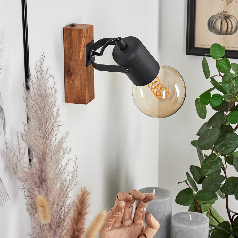 Argea Wandlamp, Muurspot Bruin, Natuurlijke kleuren, Zwart, 1-licht