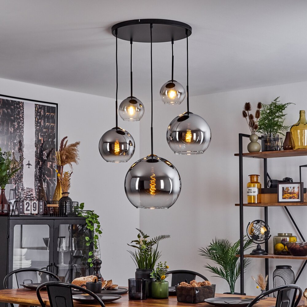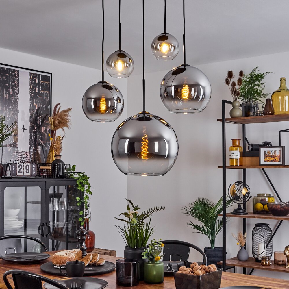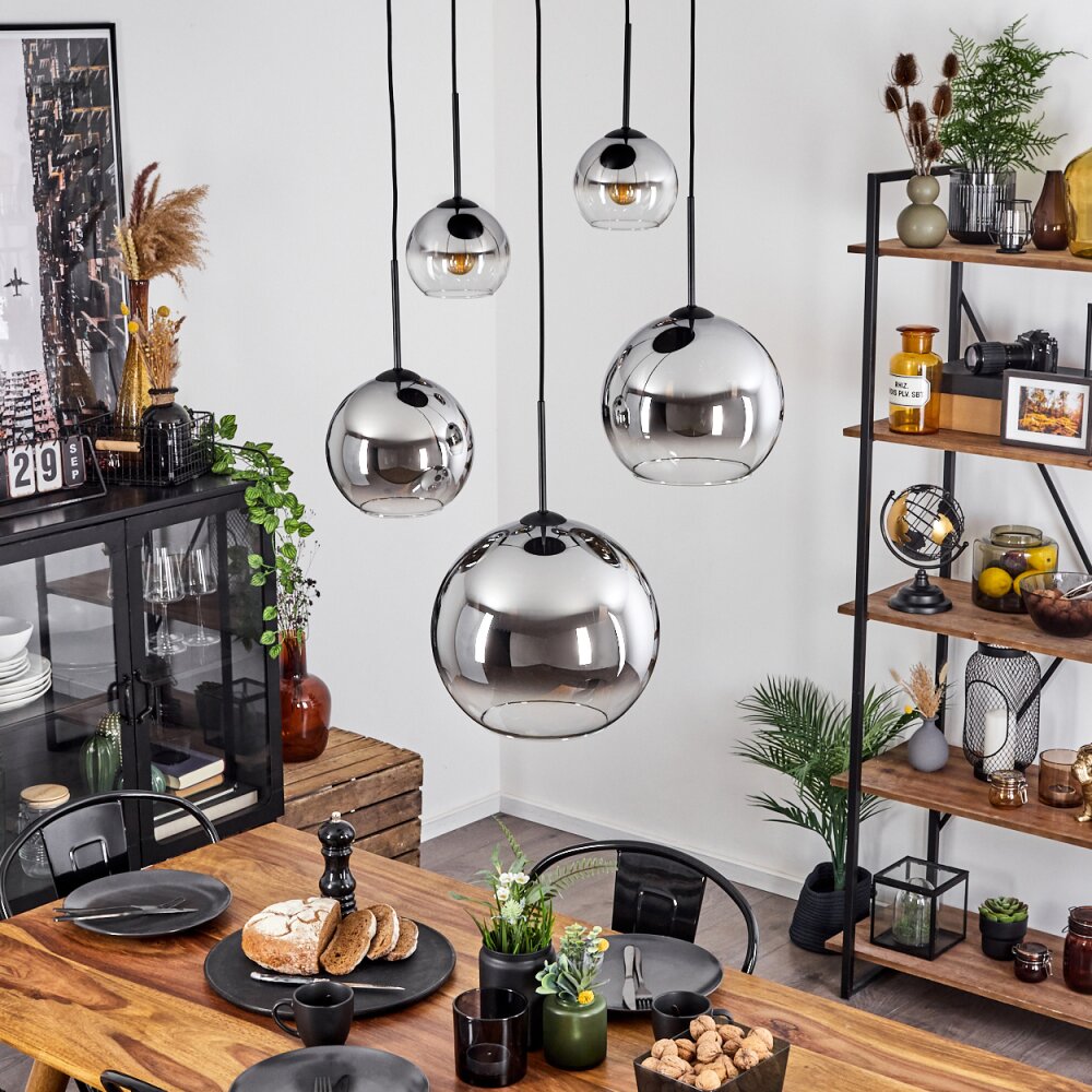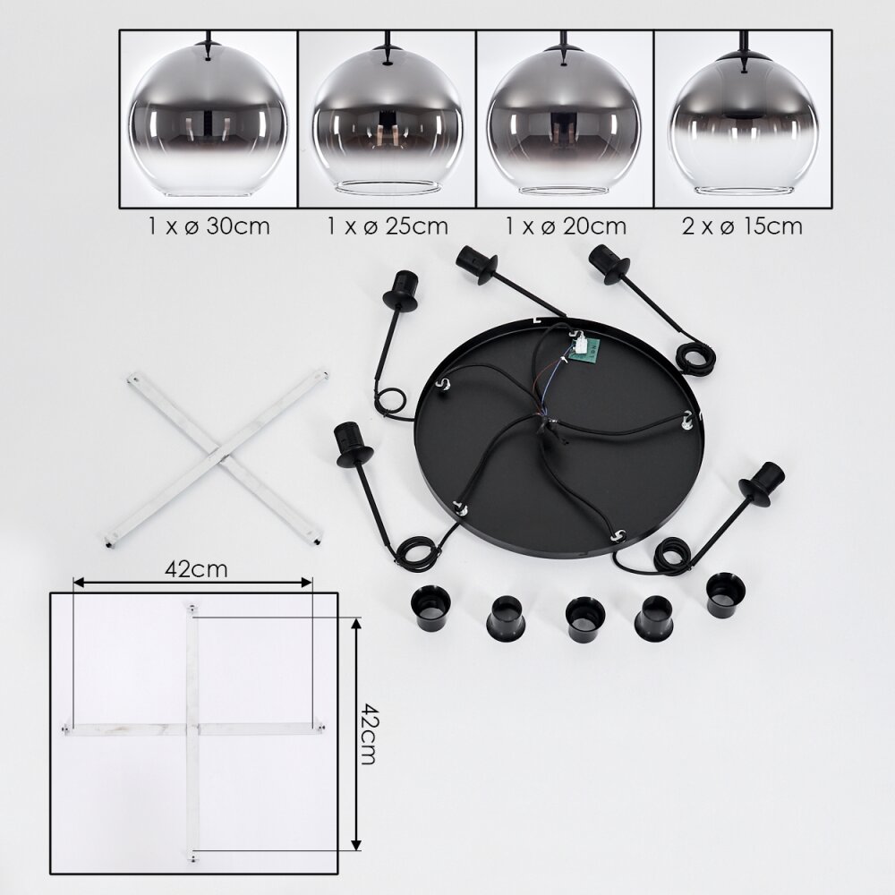 Koyoto Hanger Glas 15 cm, 20 cm, 25 cm, 30cm Chroom, Duidelijk, Rookkleurig, 5-lichts