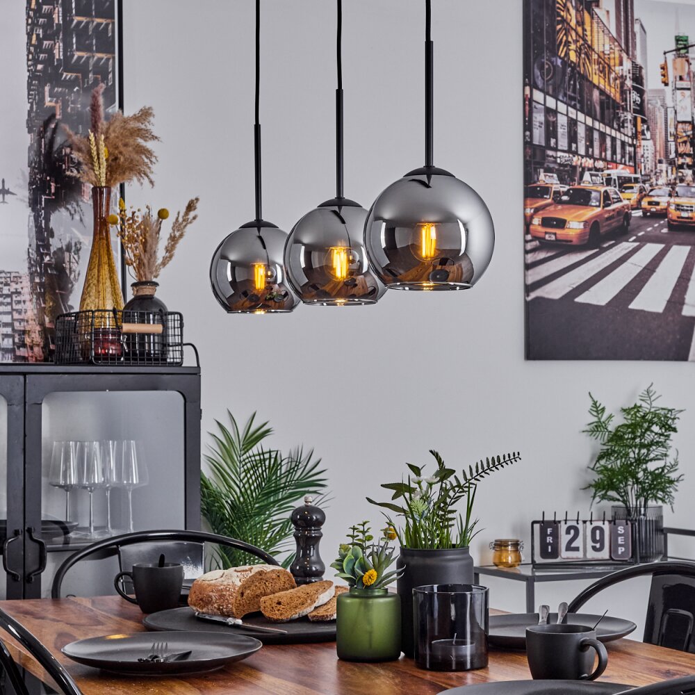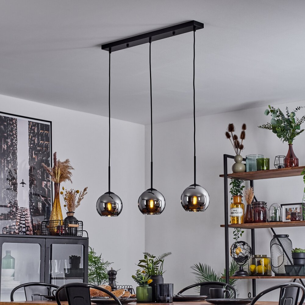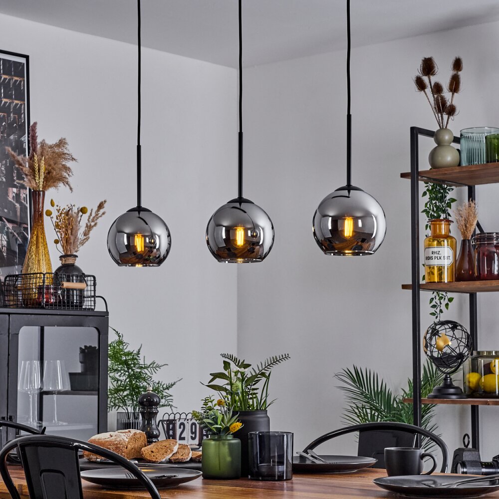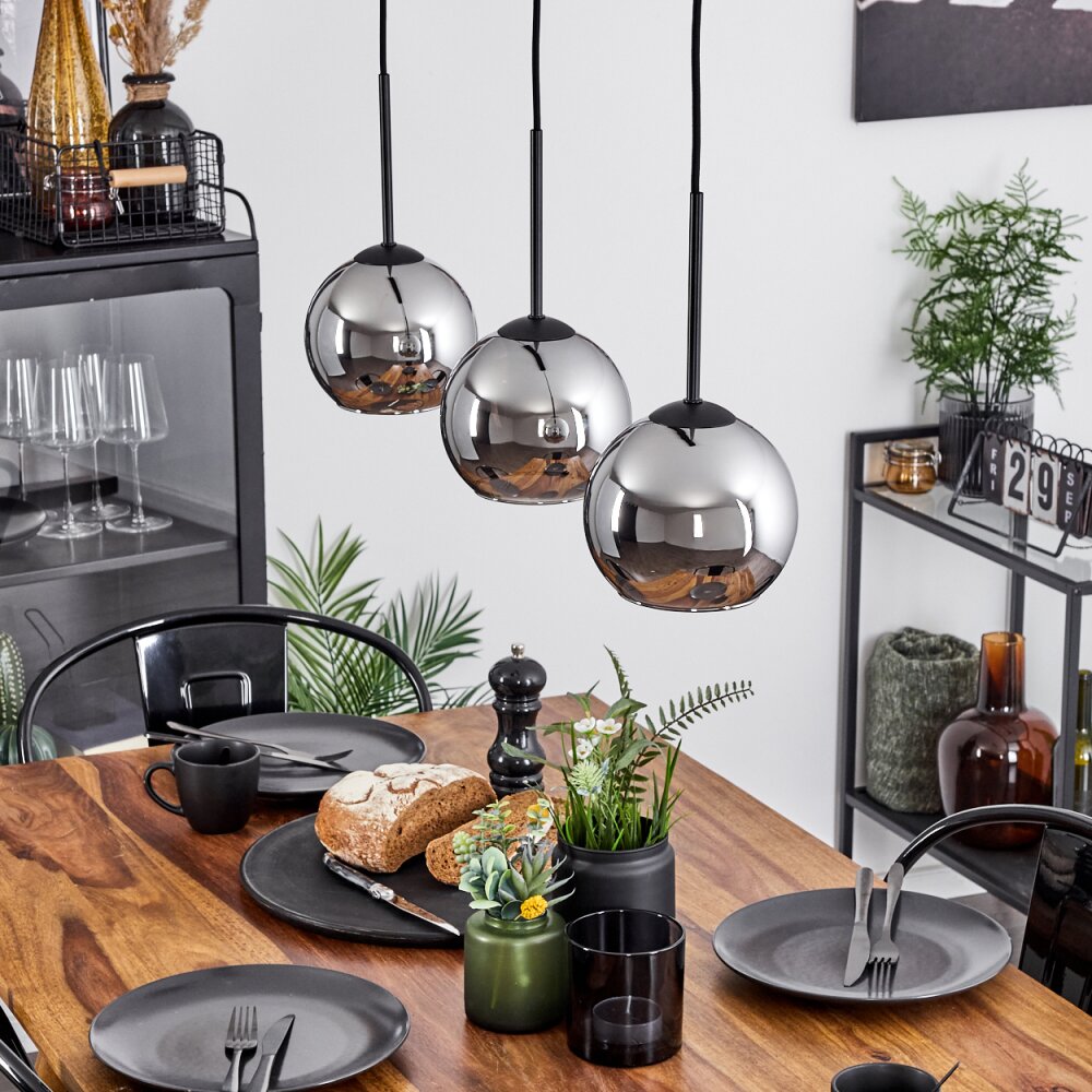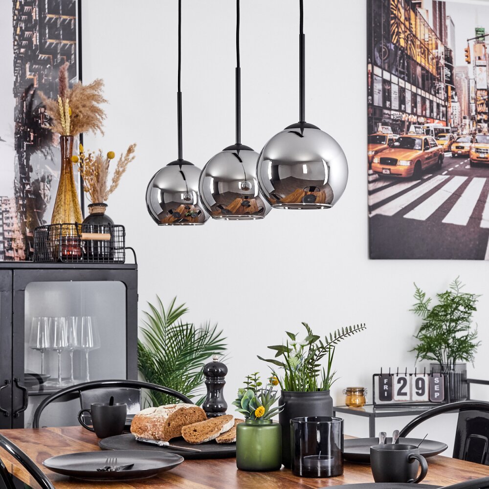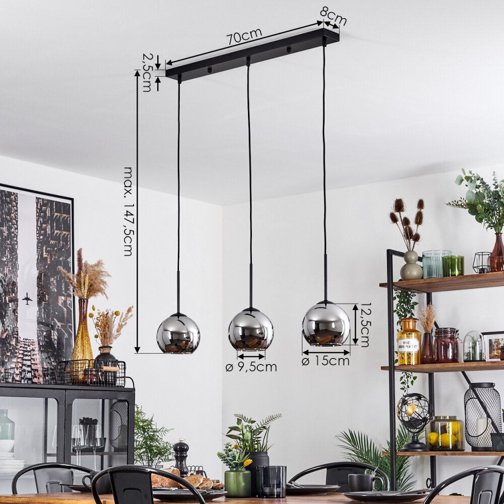 Koyoto Hanger Glas 15 cm Chroom, Rookkleurig, 3-lichts