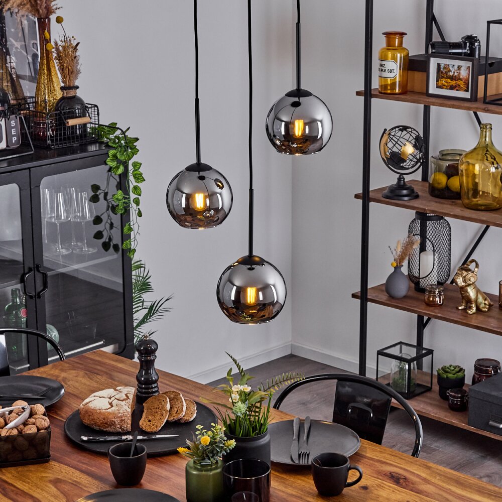 Koyoto Hanger Glas 15 cm Chroom, Rookkleurig, 3-lichts