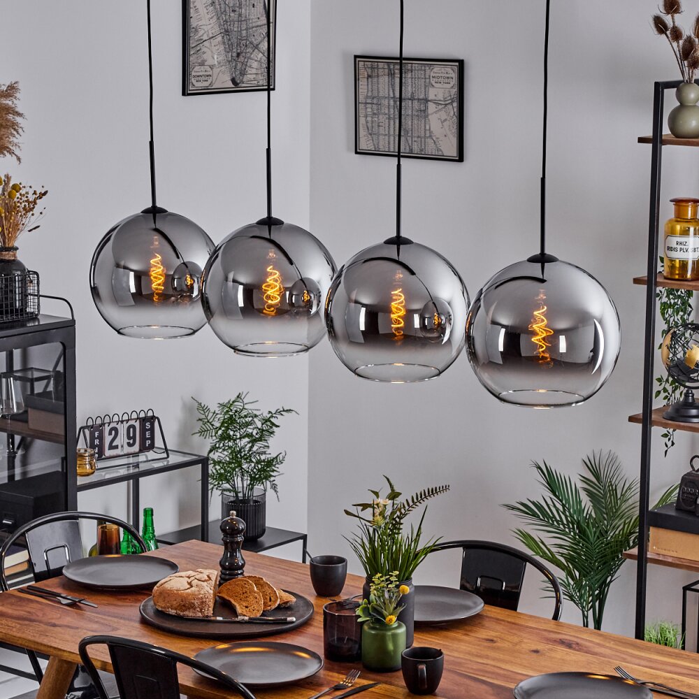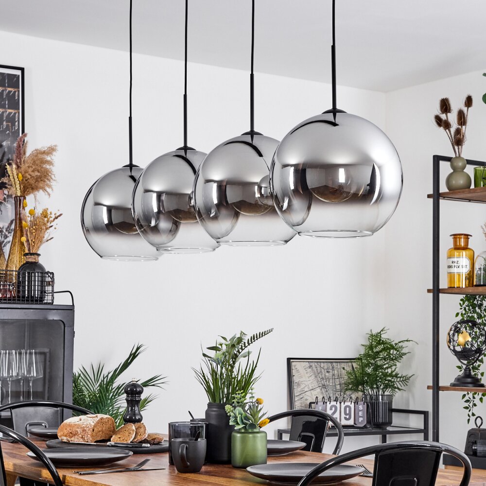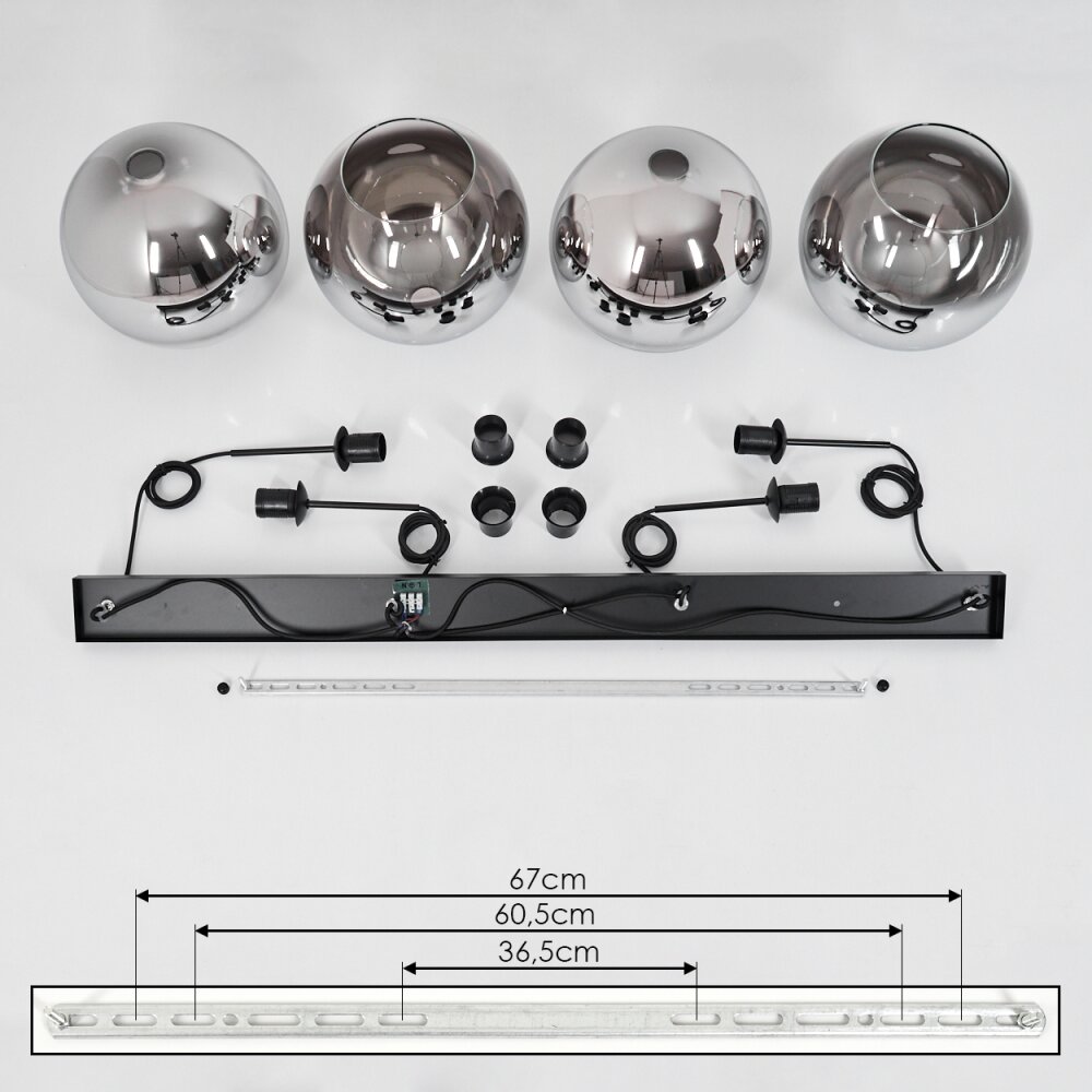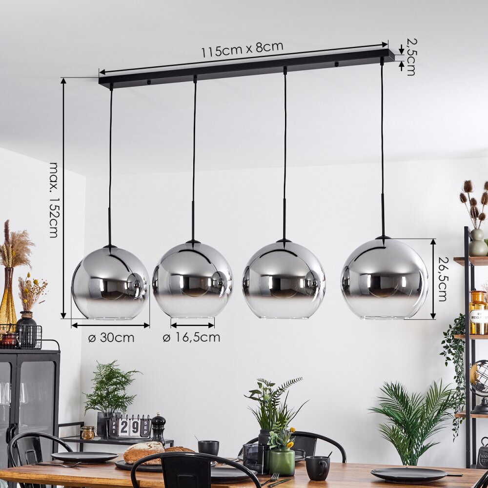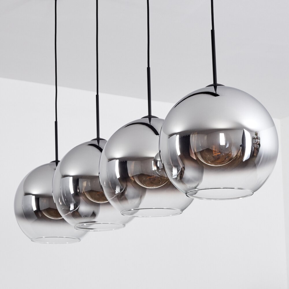 Koyoto Hanger Glas 30 cm Chroom, Duidelijk, Rookkleurig, 4-lichts