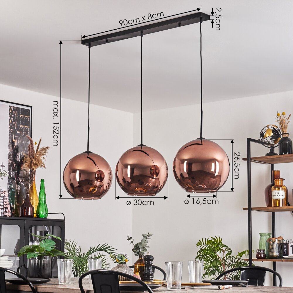 Koyoto Hanger - Glas 30 cm Koperkleurig, 3-lichts