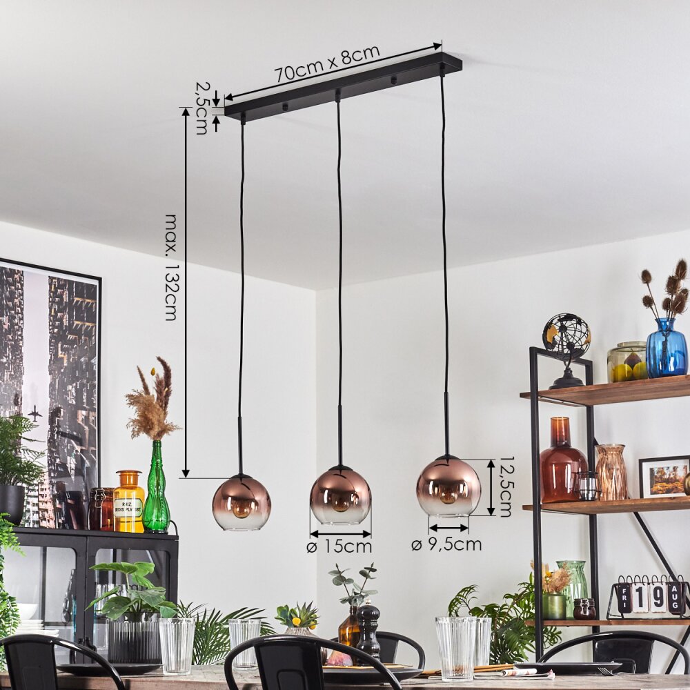 Koyoto Hanglamp Duidelijk, Koperkleurig, 3-lichts
