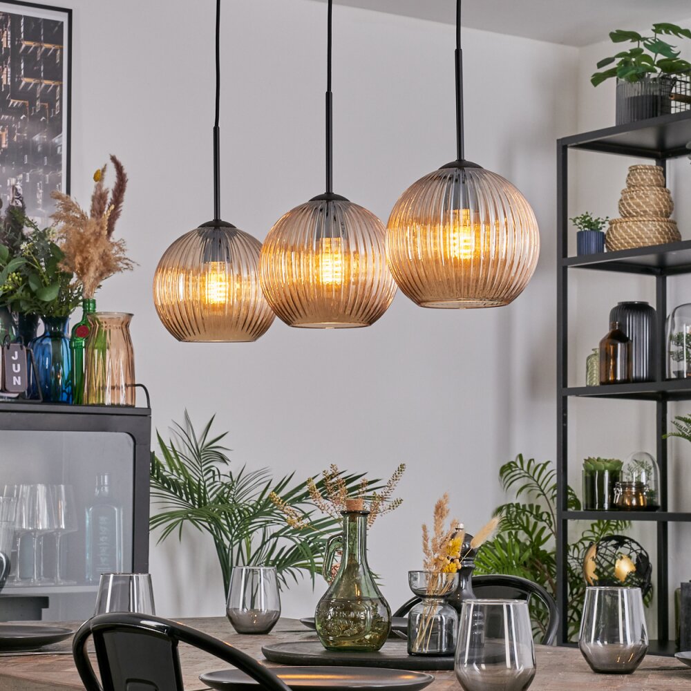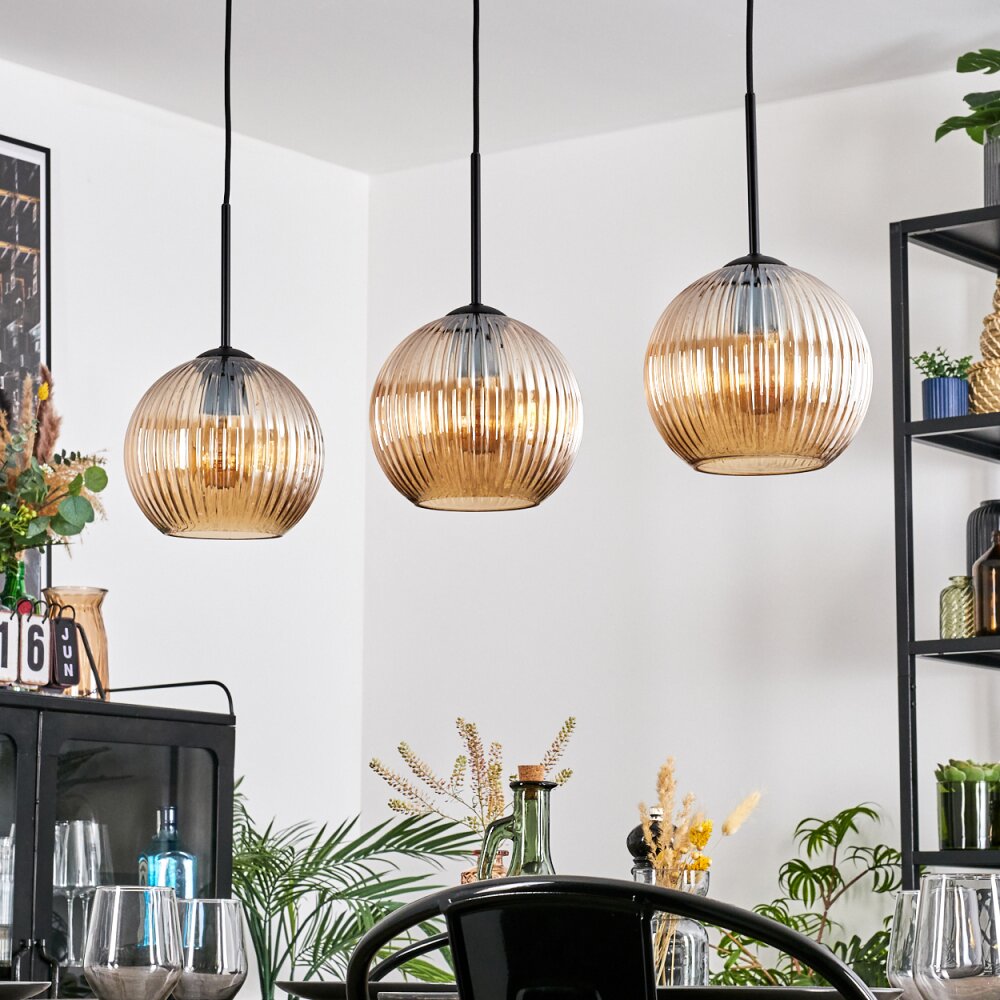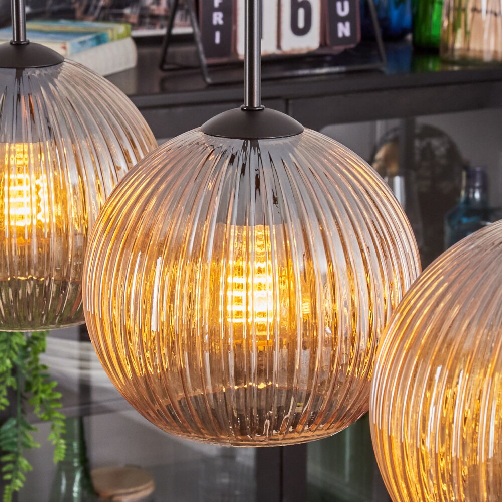 Koyoto Hanglamp, Kogellampje, Hanglamp Amber, 3-lichts
