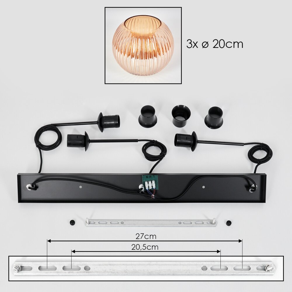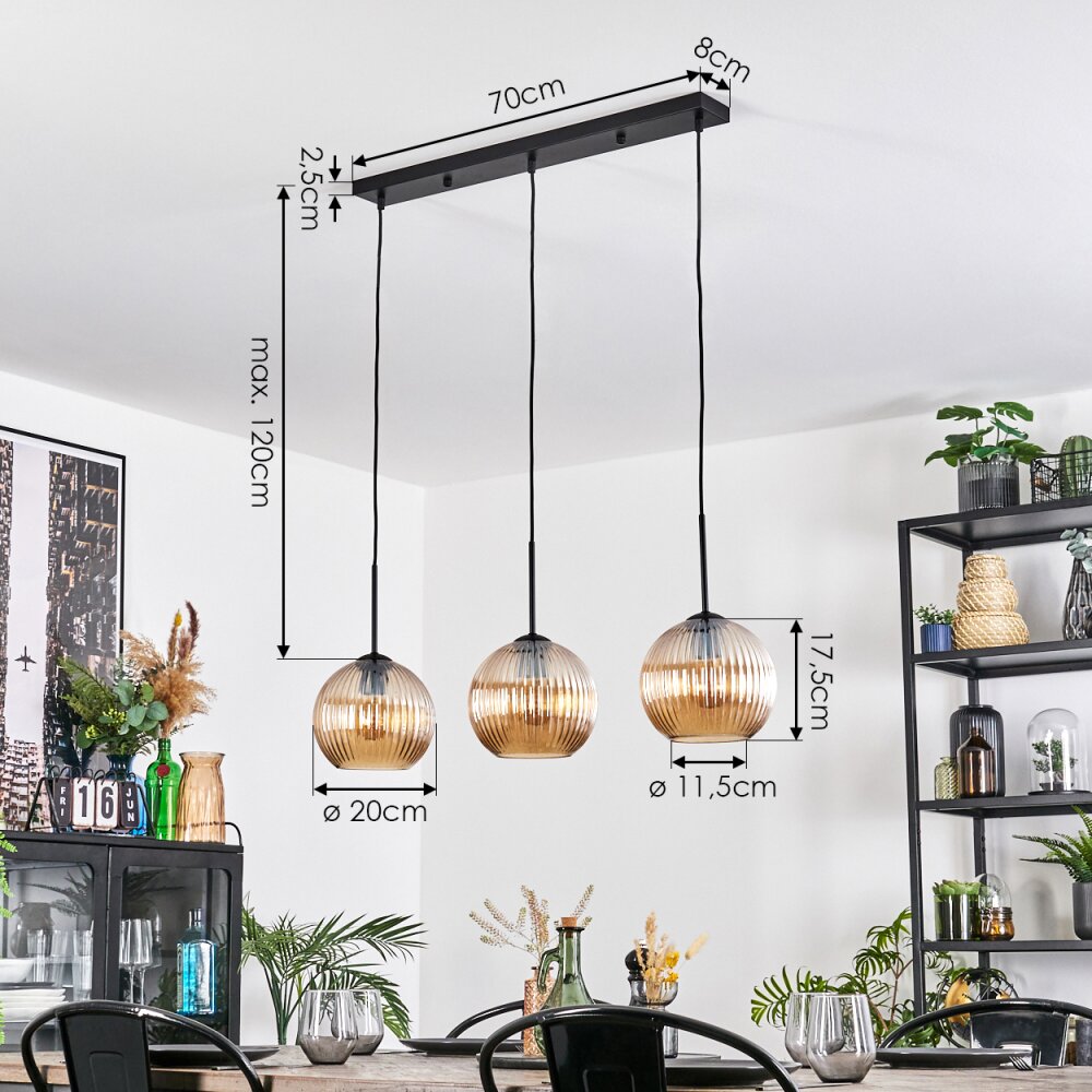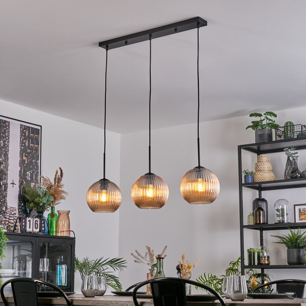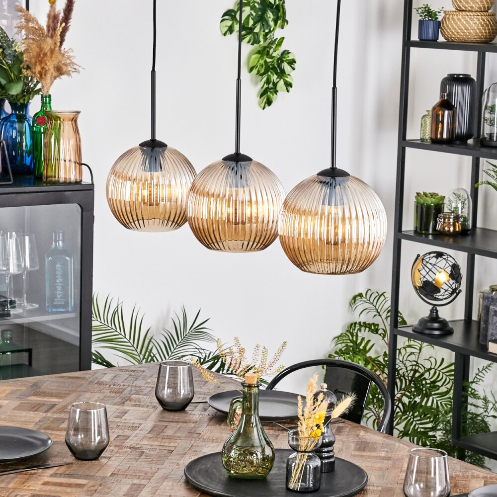 Koyoto Hanglamp, Kogellampje, Hanglamp Amber, 3-lichts