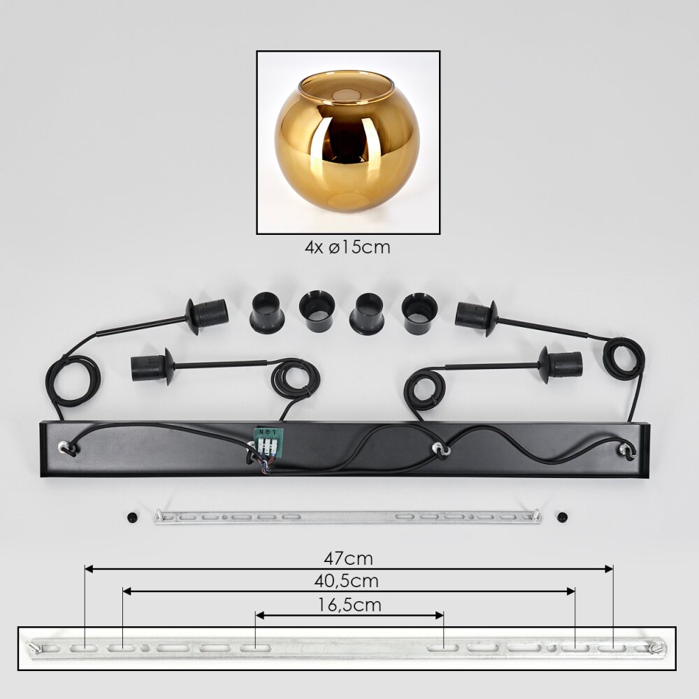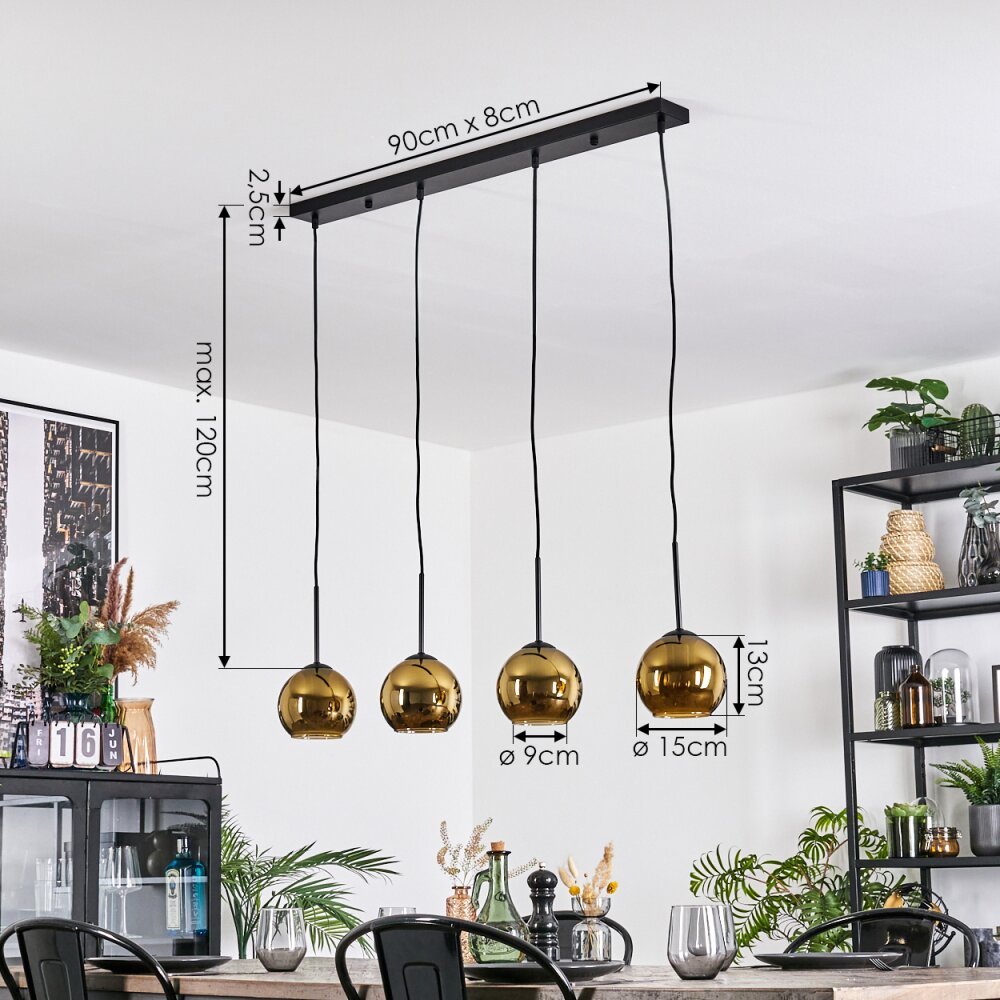 Koyoto Hanglamp, Kogellampje, Hanglamp Goud, 4-lichts