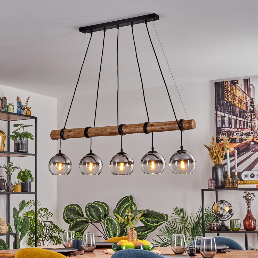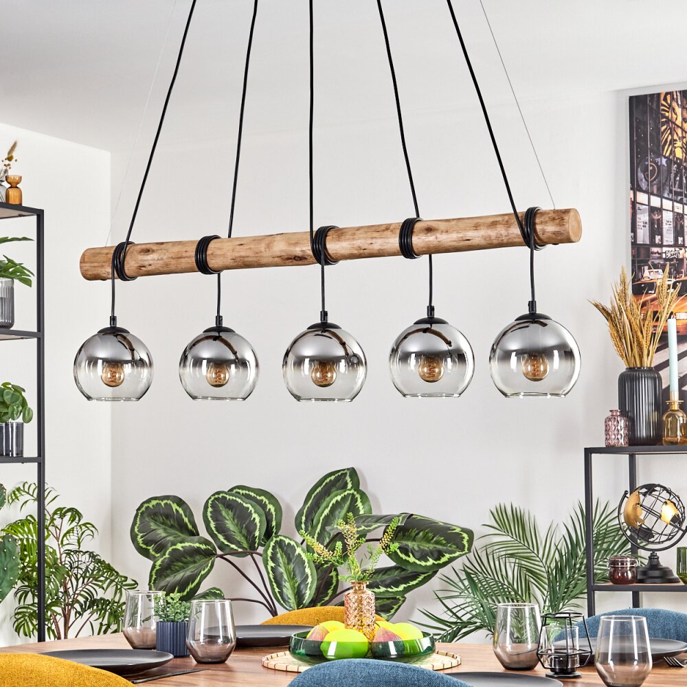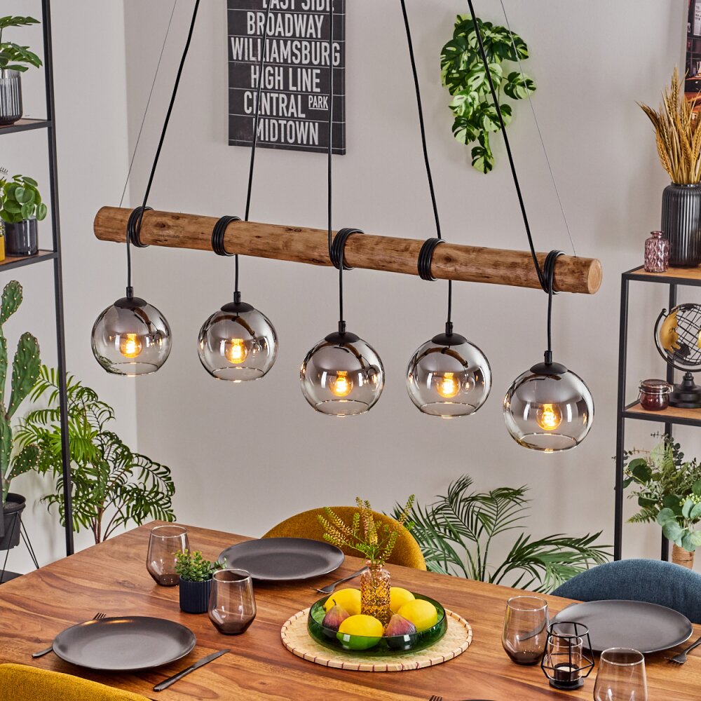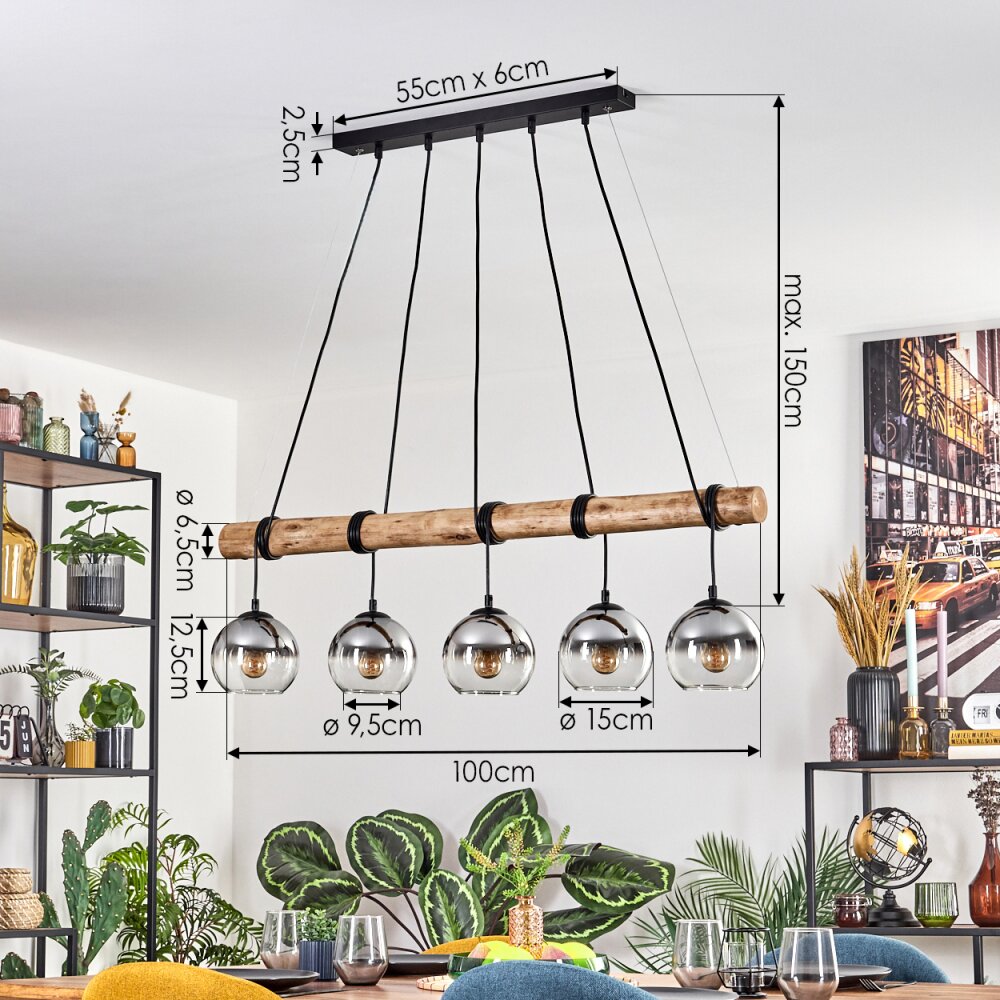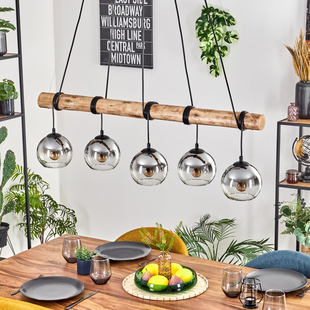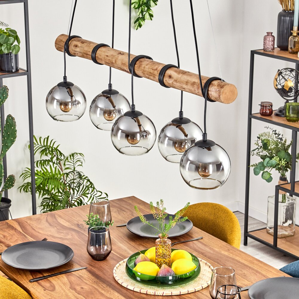 Koyoto Hanglamp, Kogellampje, Hanglamp Natuurlijke kleuren, Zwart, 5-lichts