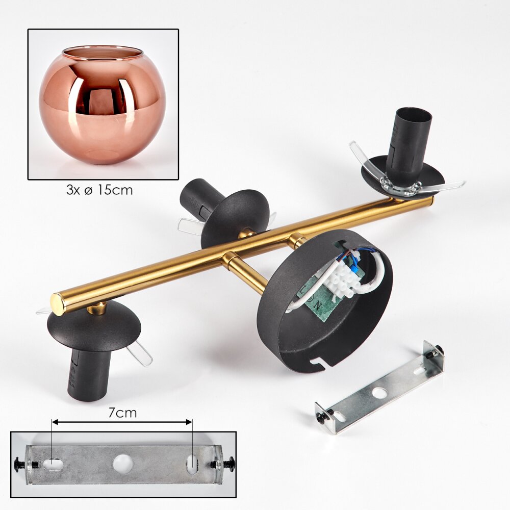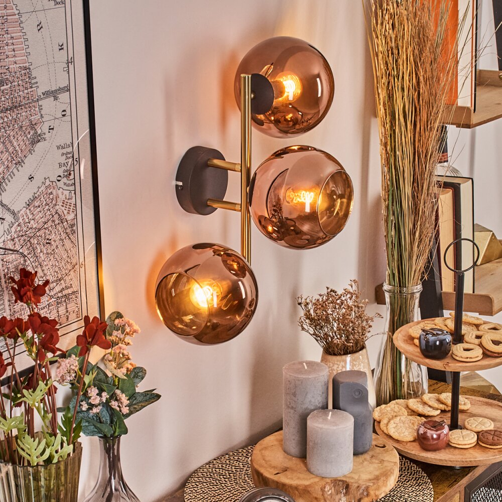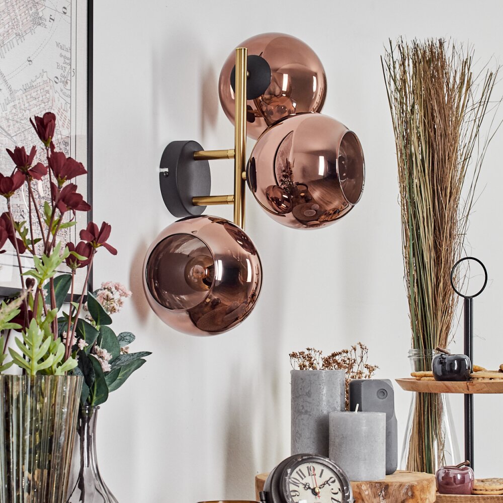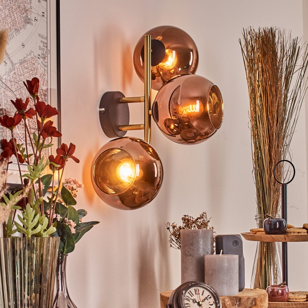 Koyoto Kogellampje, Wandlamp Goud, Zwart, 3-lichts