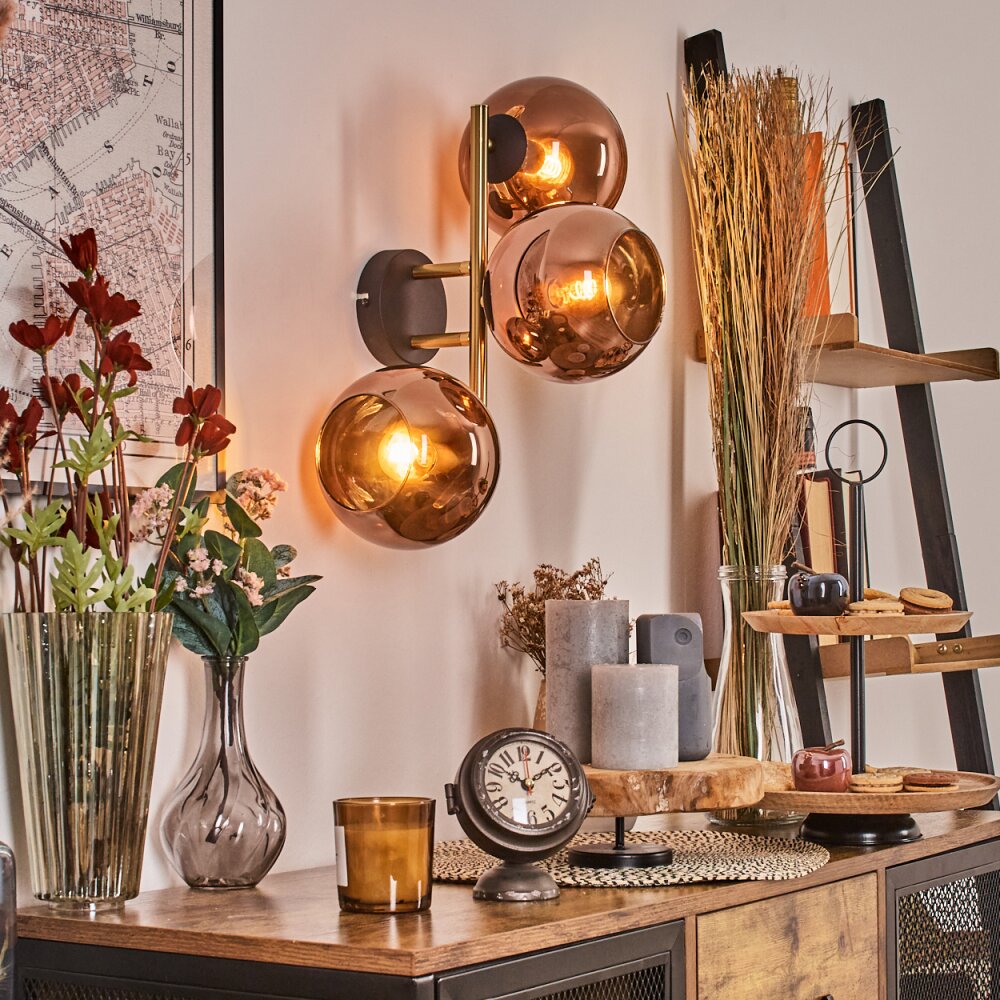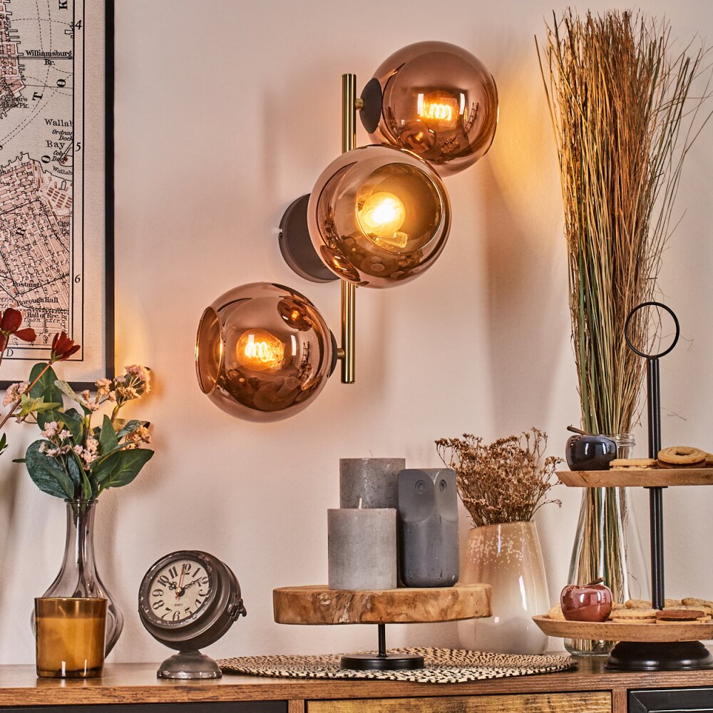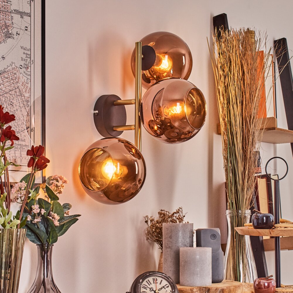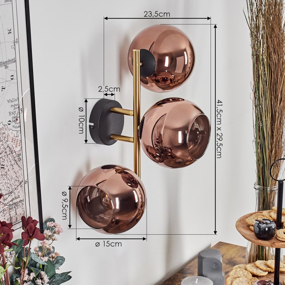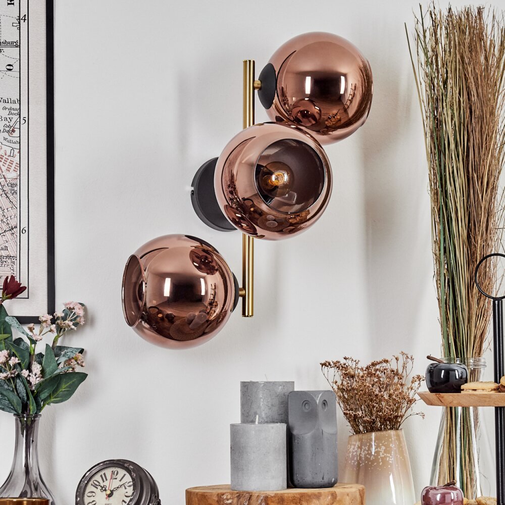 Koyoto Kogellampje, Wandlamp Goud, Zwart, 3-lichts