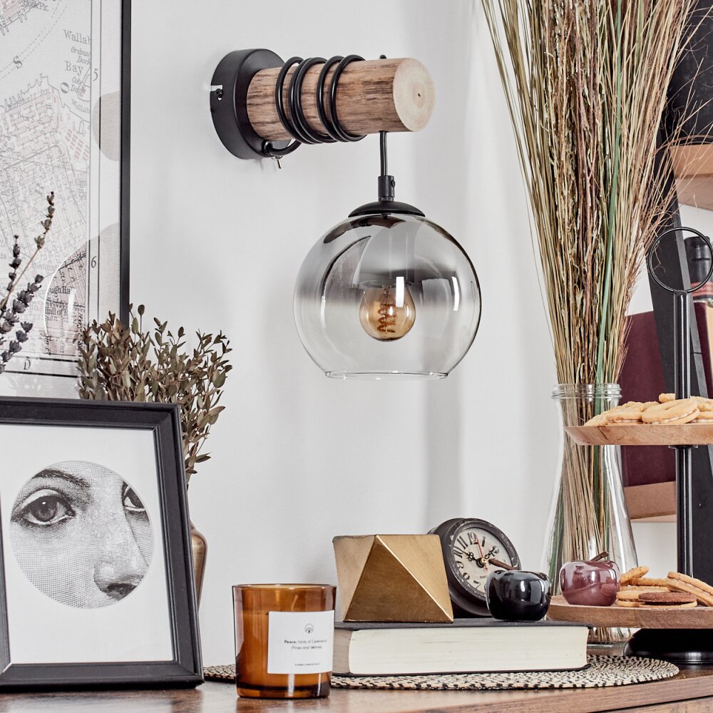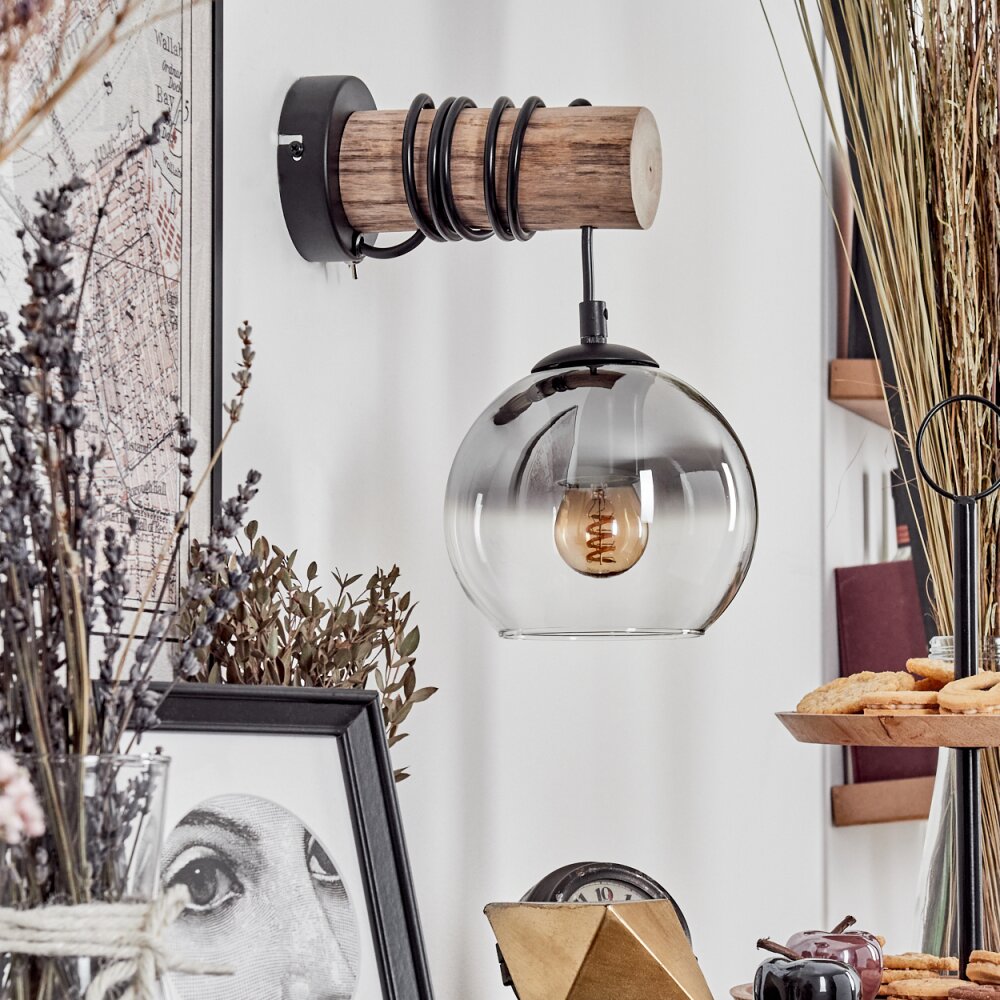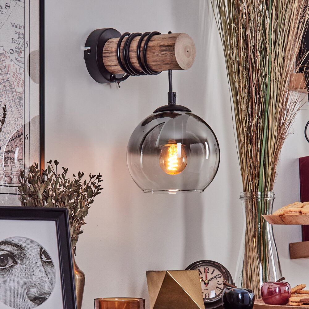 Koyoto Muurlamp - Glas 15 cm Natuurlijke kleuren, Zwart, 1-licht