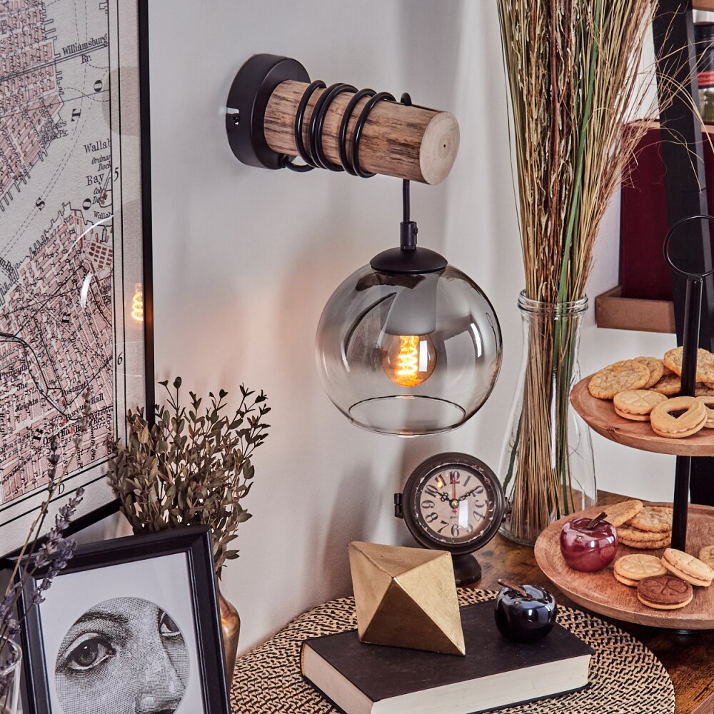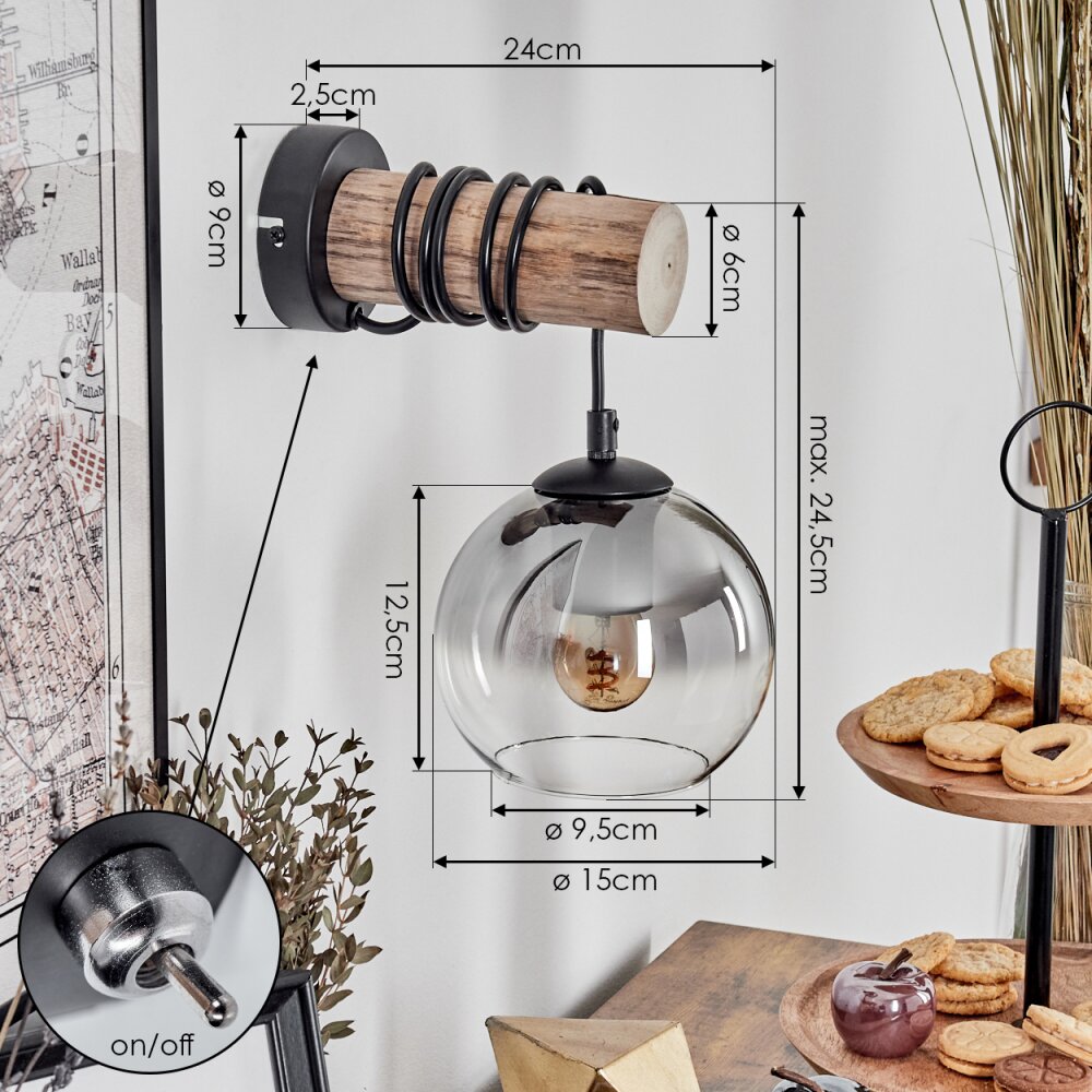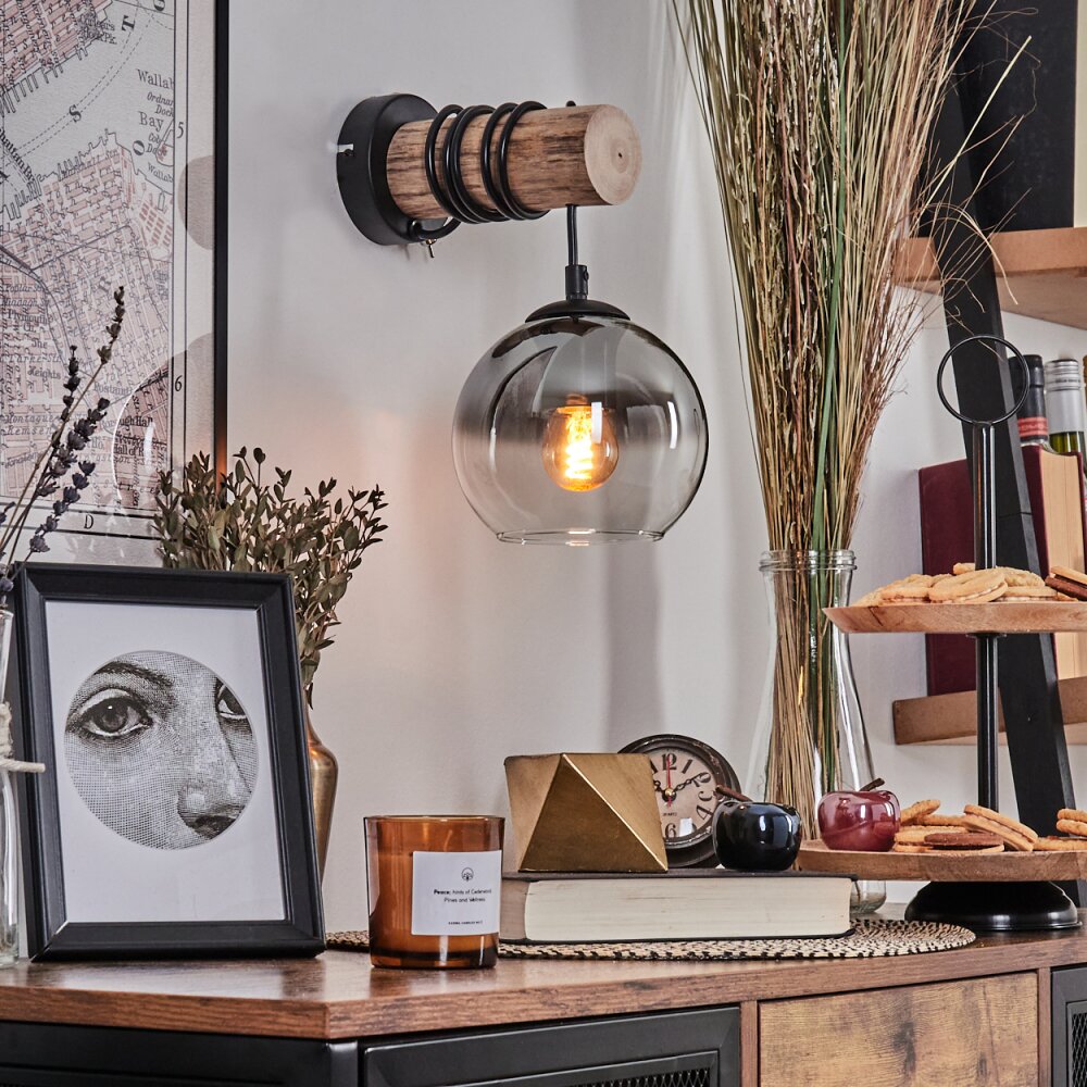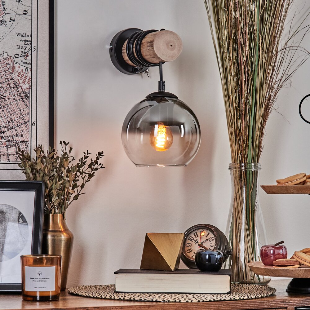 Koyoto Muurlamp - Glas 15 cm Natuurlijke kleuren, Zwart, 1-licht