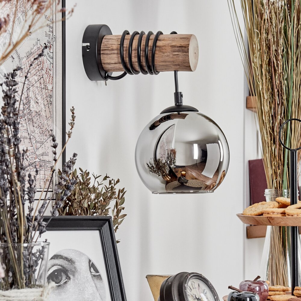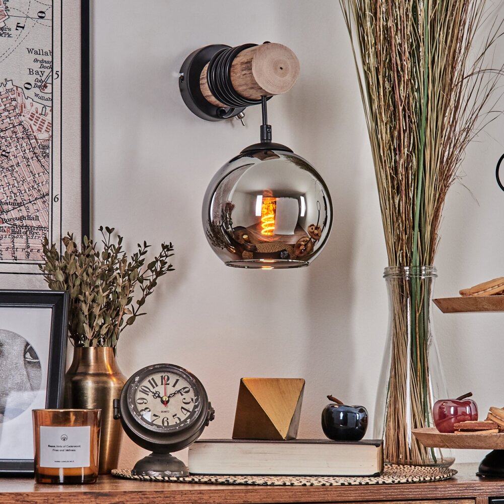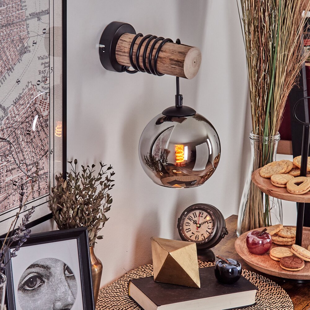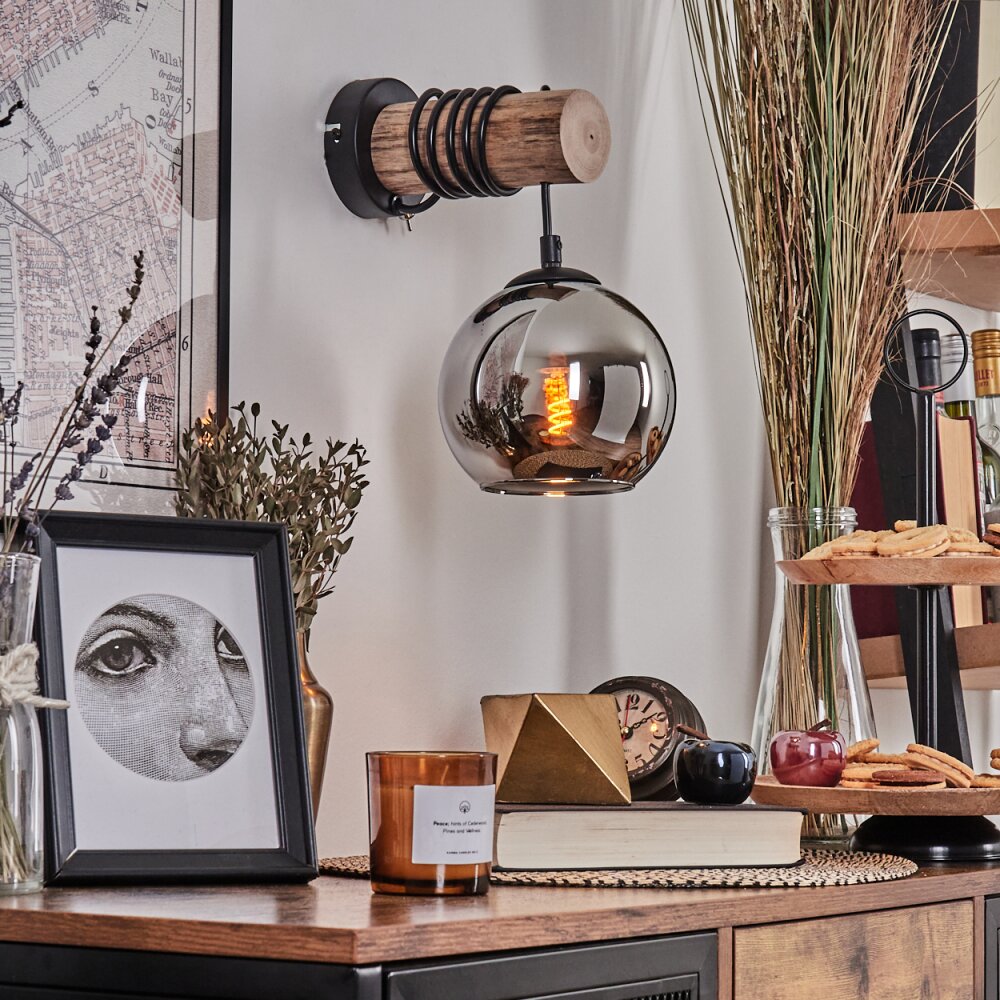 Koyoto Muurlamp - Glas 15 cm Natuurlijke kleuren, Zwart, 1-licht