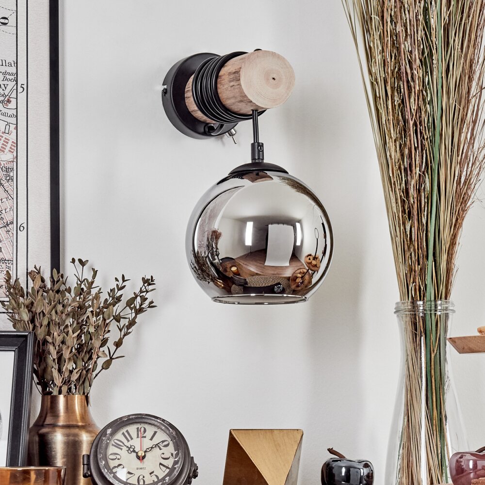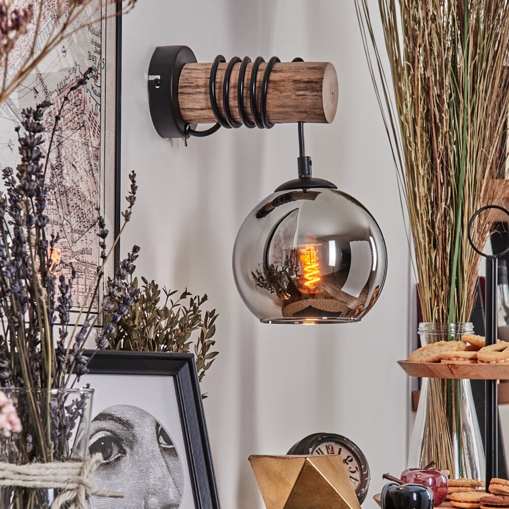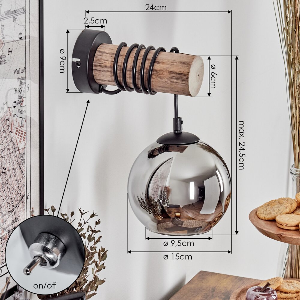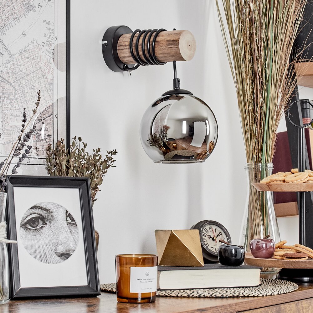 Koyoto Muurlamp - Glas 15 cm Natuurlijke kleuren, Zwart, 1-licht