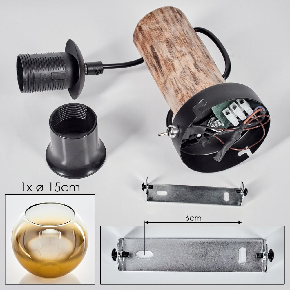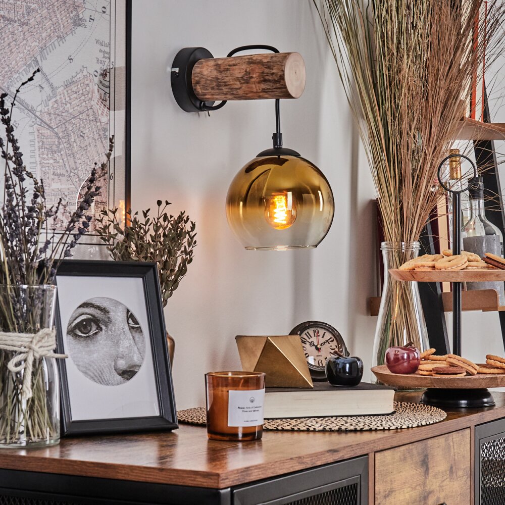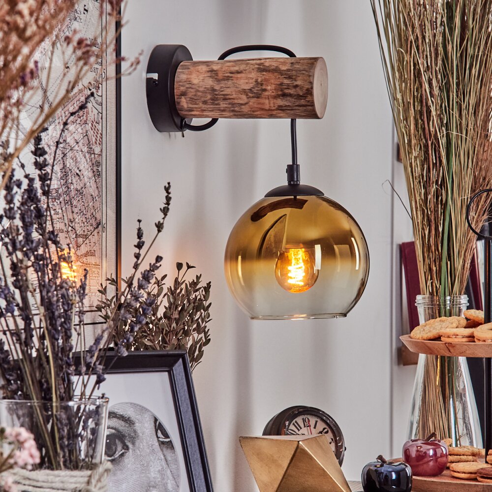 Koyoto Muurlamp - Glas 15 cm Natuurlijke kleuren, Zwart, 1-licht