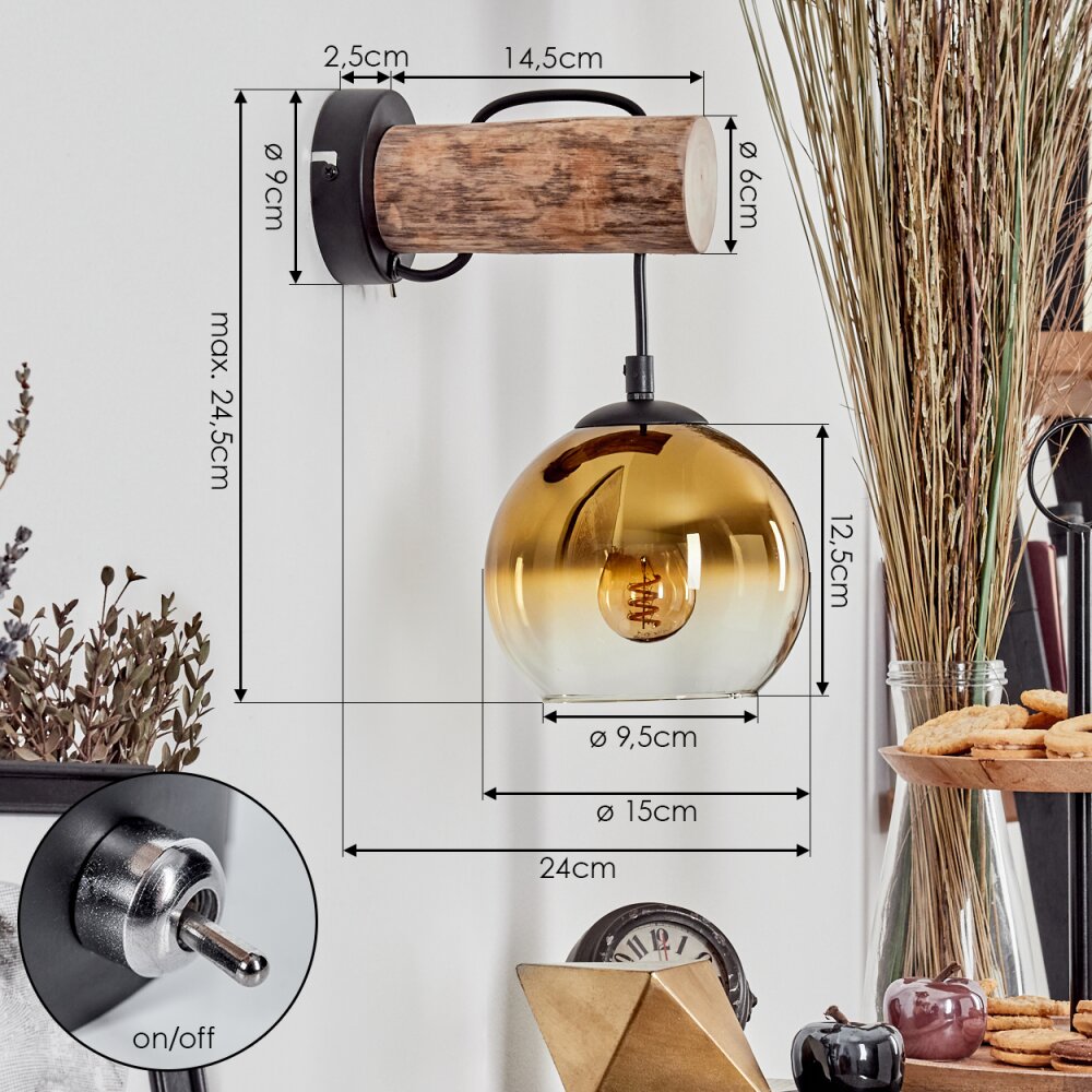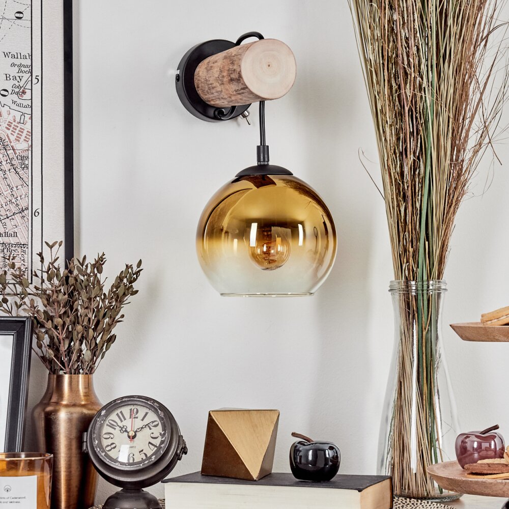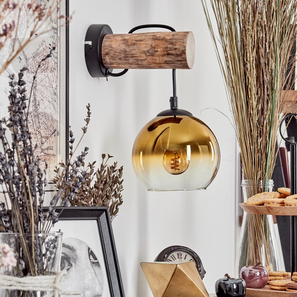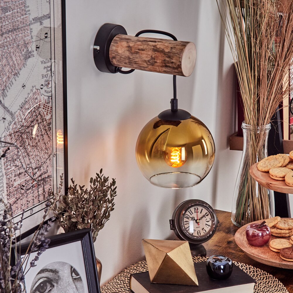 Koyoto Muurlamp - Glas 15 cm Natuurlijke kleuren, Zwart, 1-licht