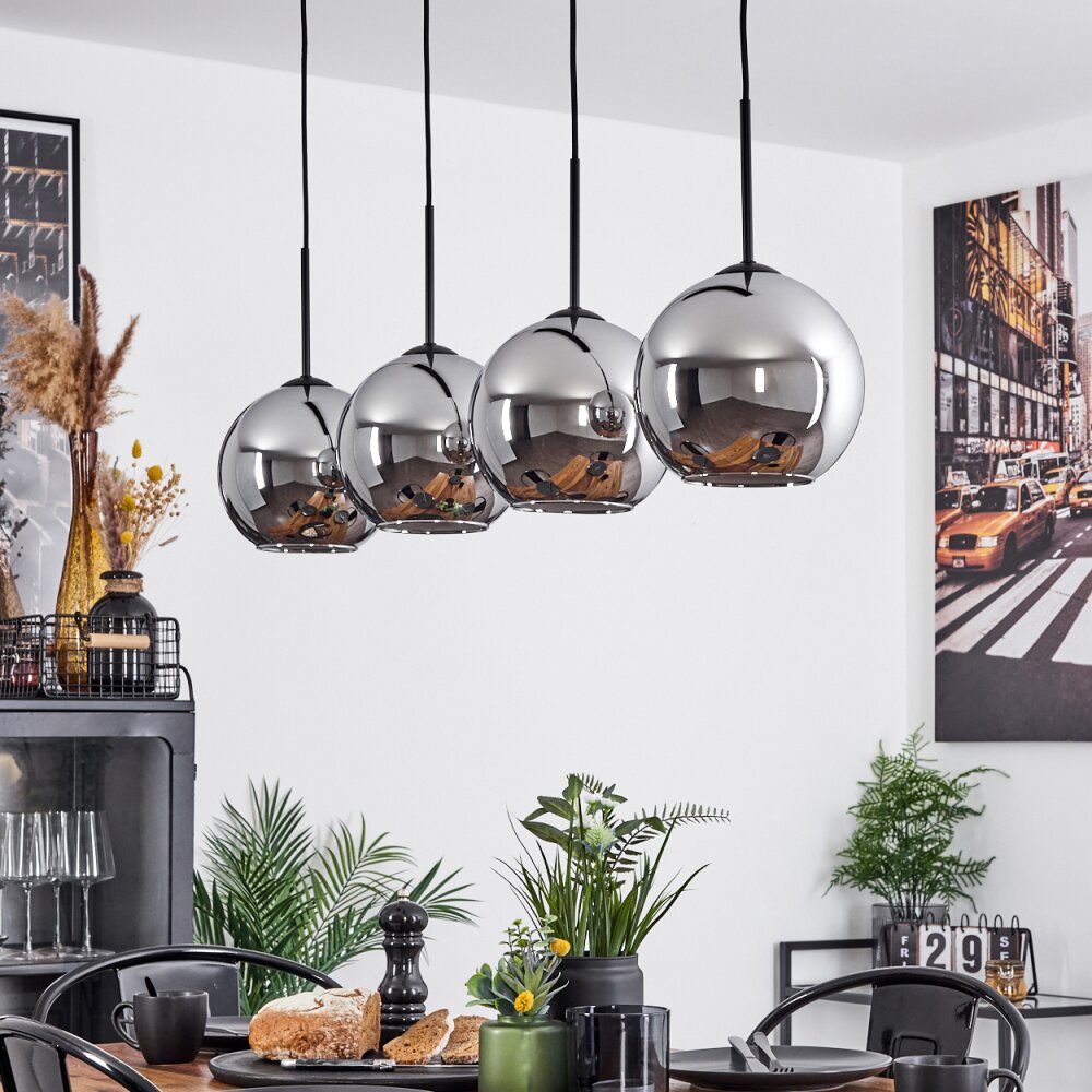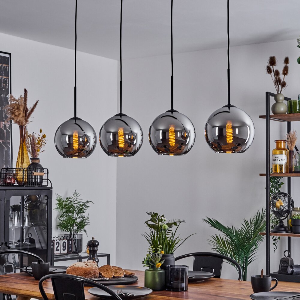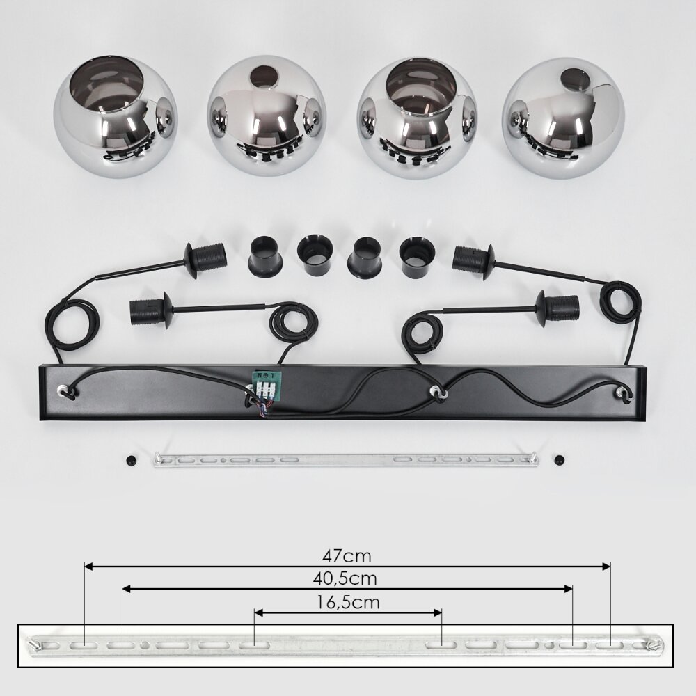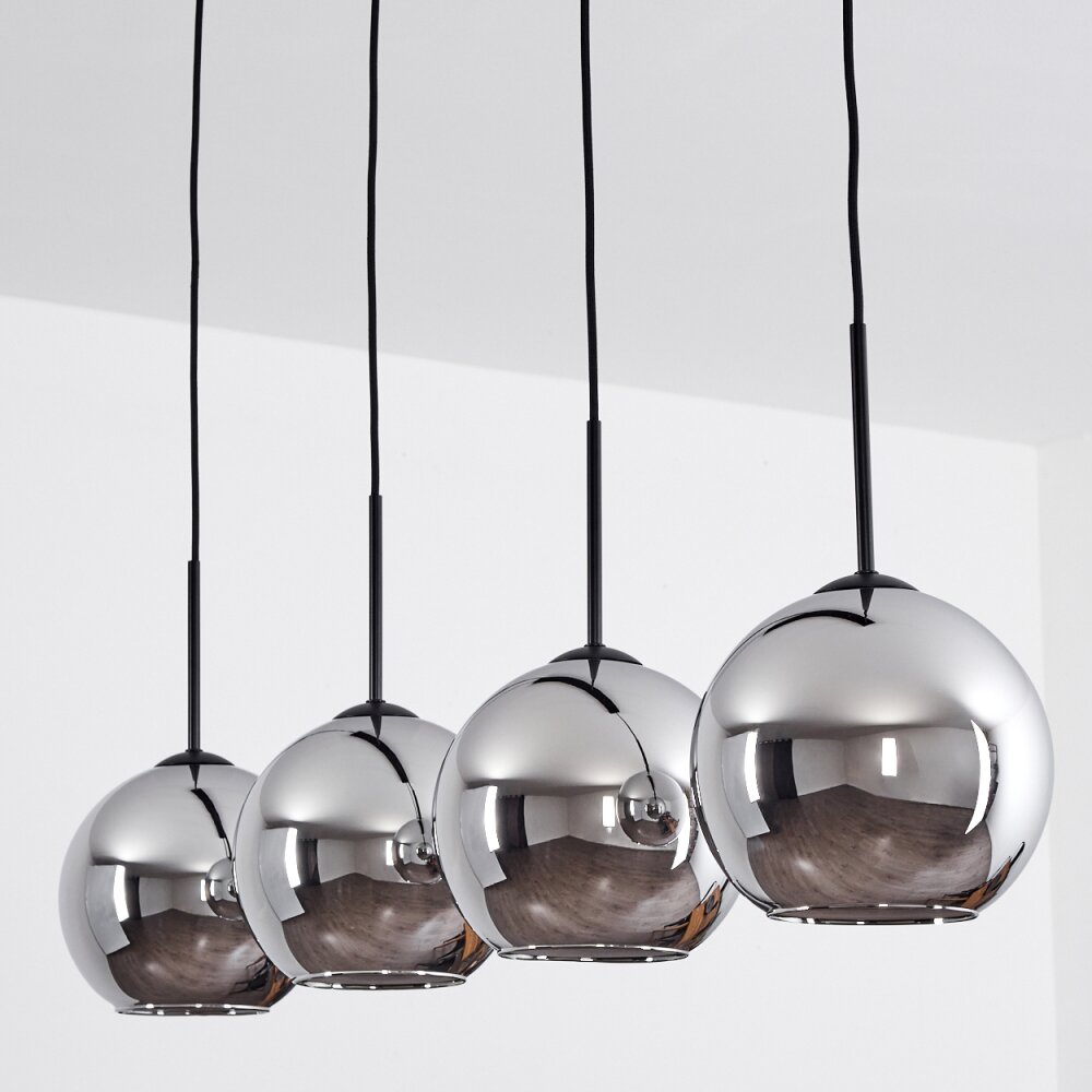 Koyoto Plafondlamp Glas 20 cm Chroom, Rookkleurig, 4-lichts
