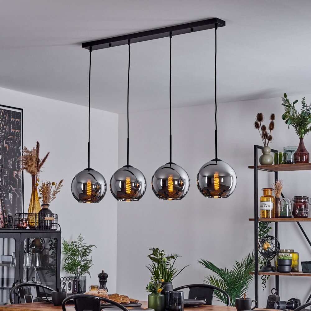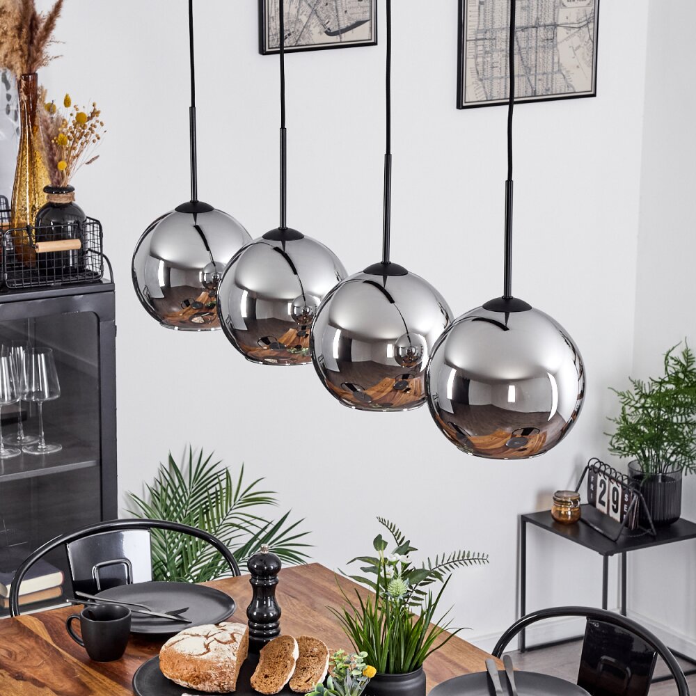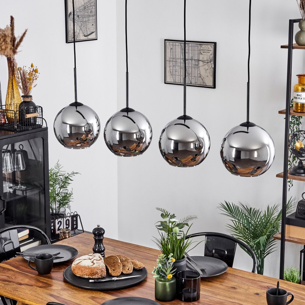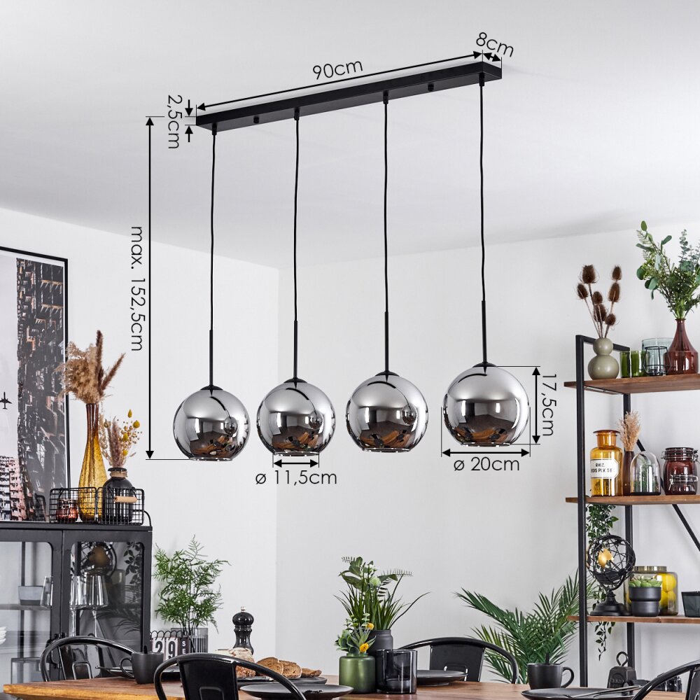 Koyoto Plafondlamp Glas 20 cm Chroom, Rookkleurig, 4-lichts