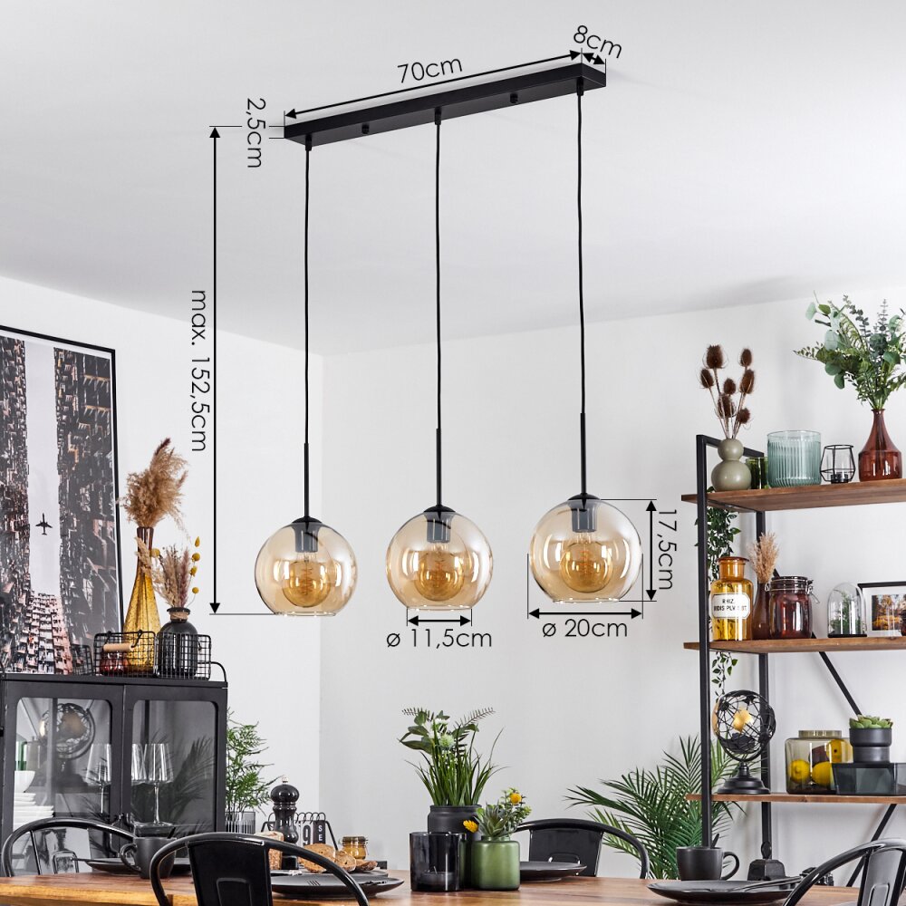Koyoto Plafondlamp Glas 20 cm Amber, 3-lichts