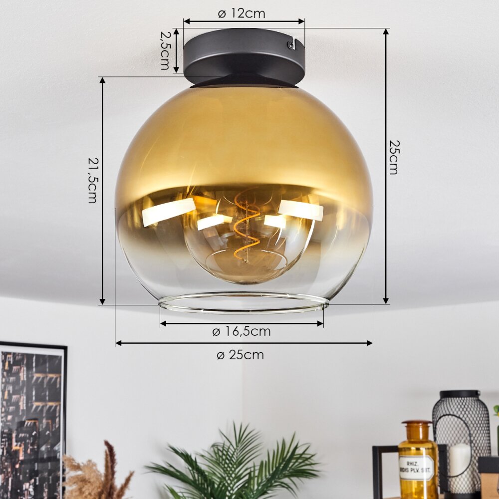 Koyoto Plafondlamp Glas 25 cm Goud, Duidelijk, 1-licht