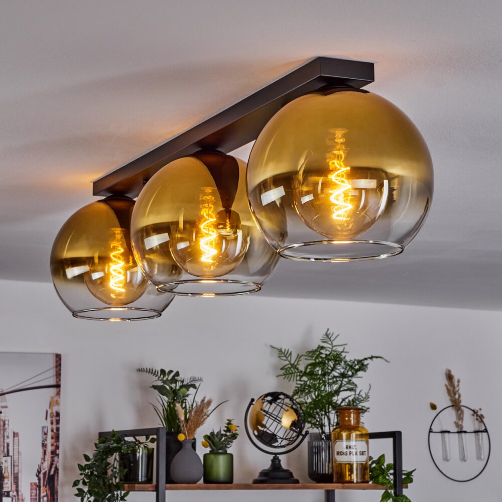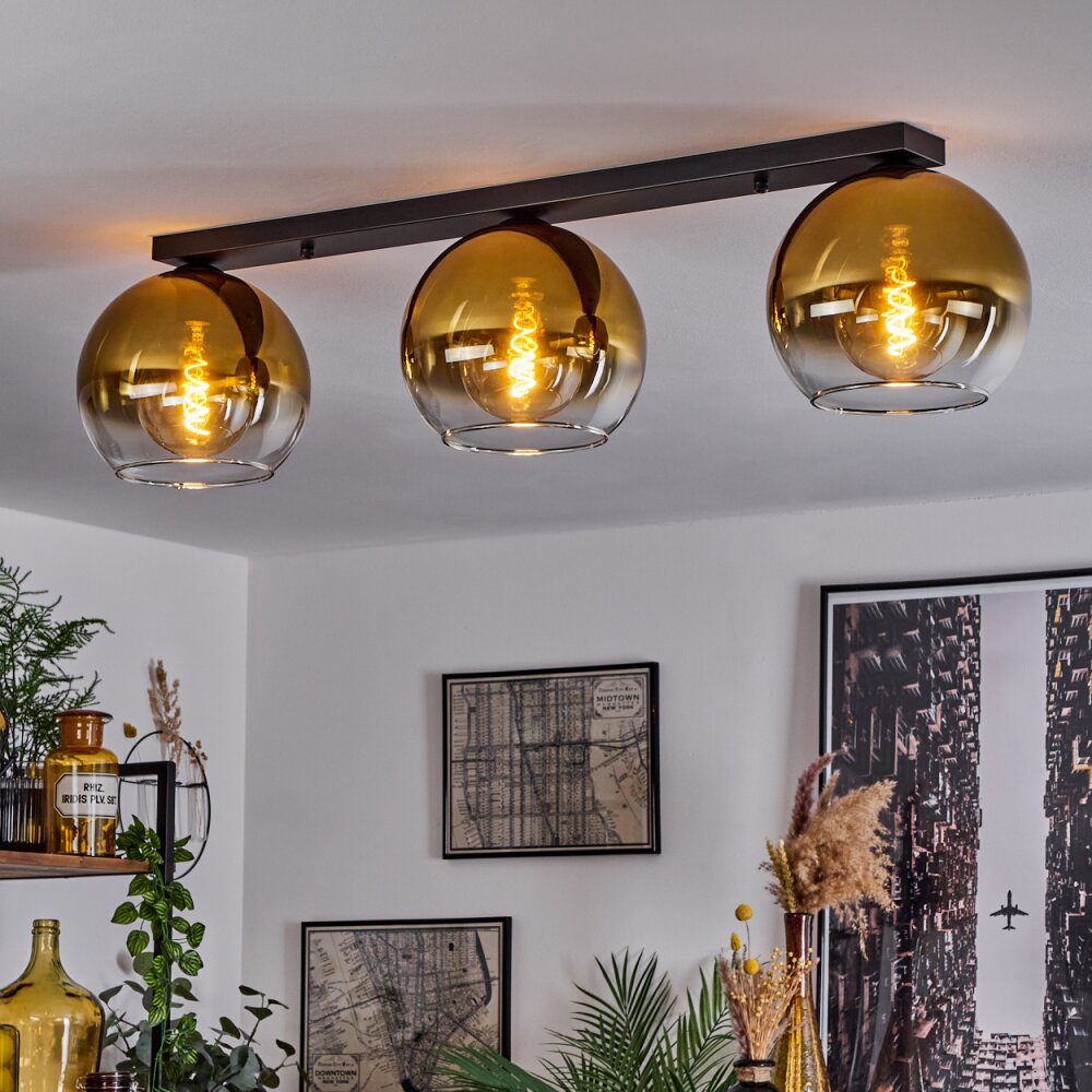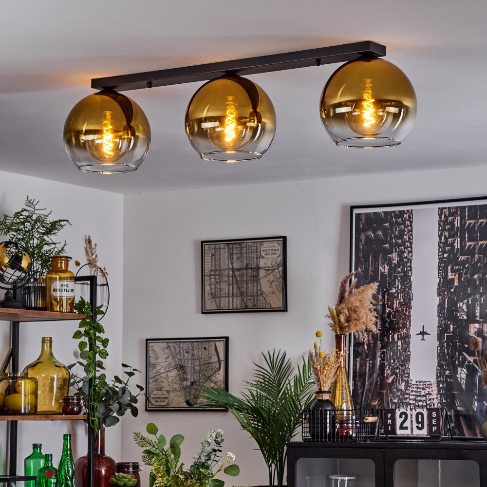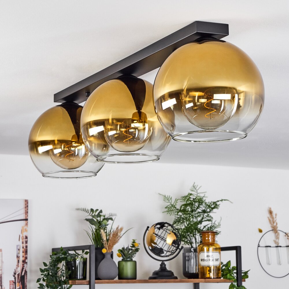 Koyoto Plafondlamp Glas 25 cm Goud, Duidelijk, 3-lichts