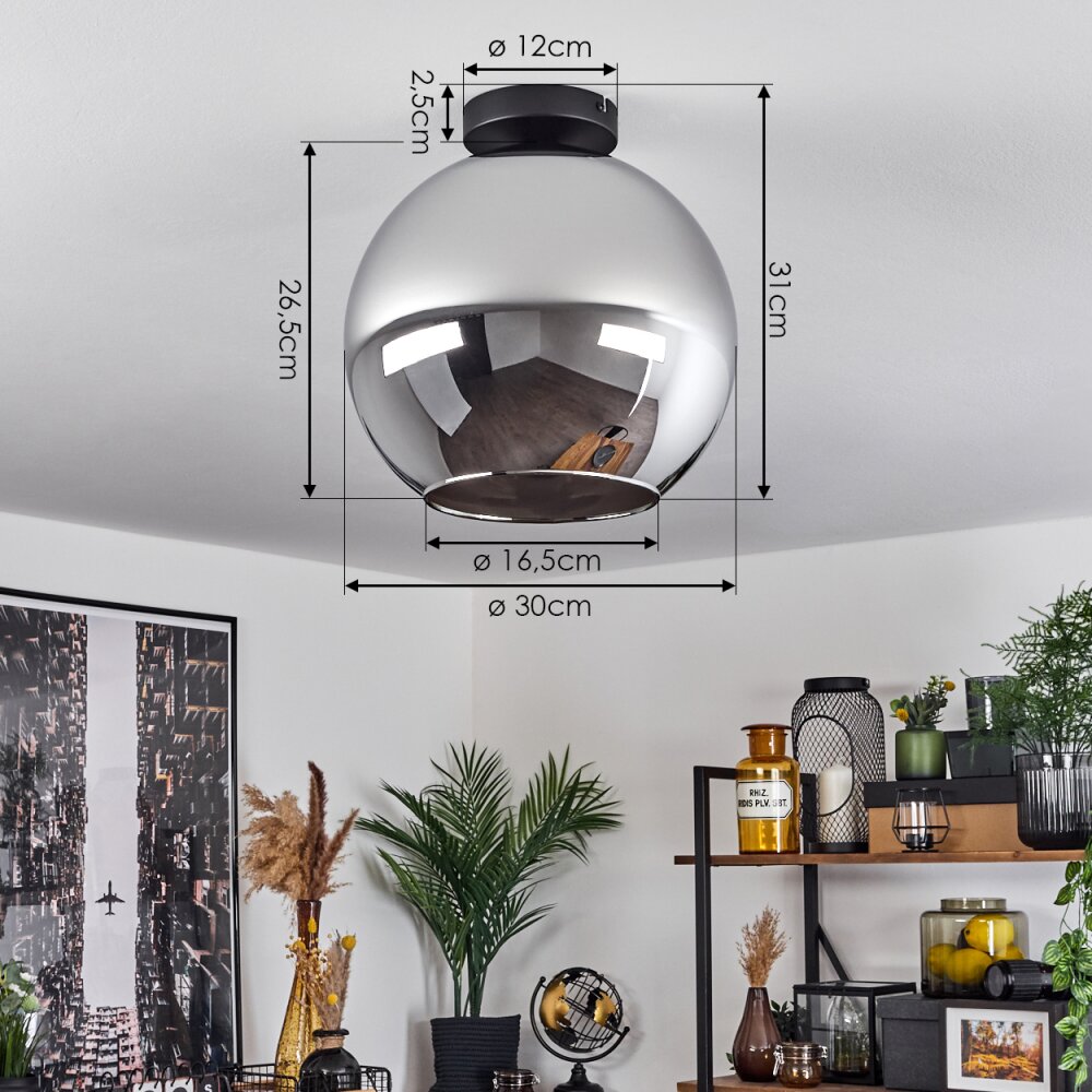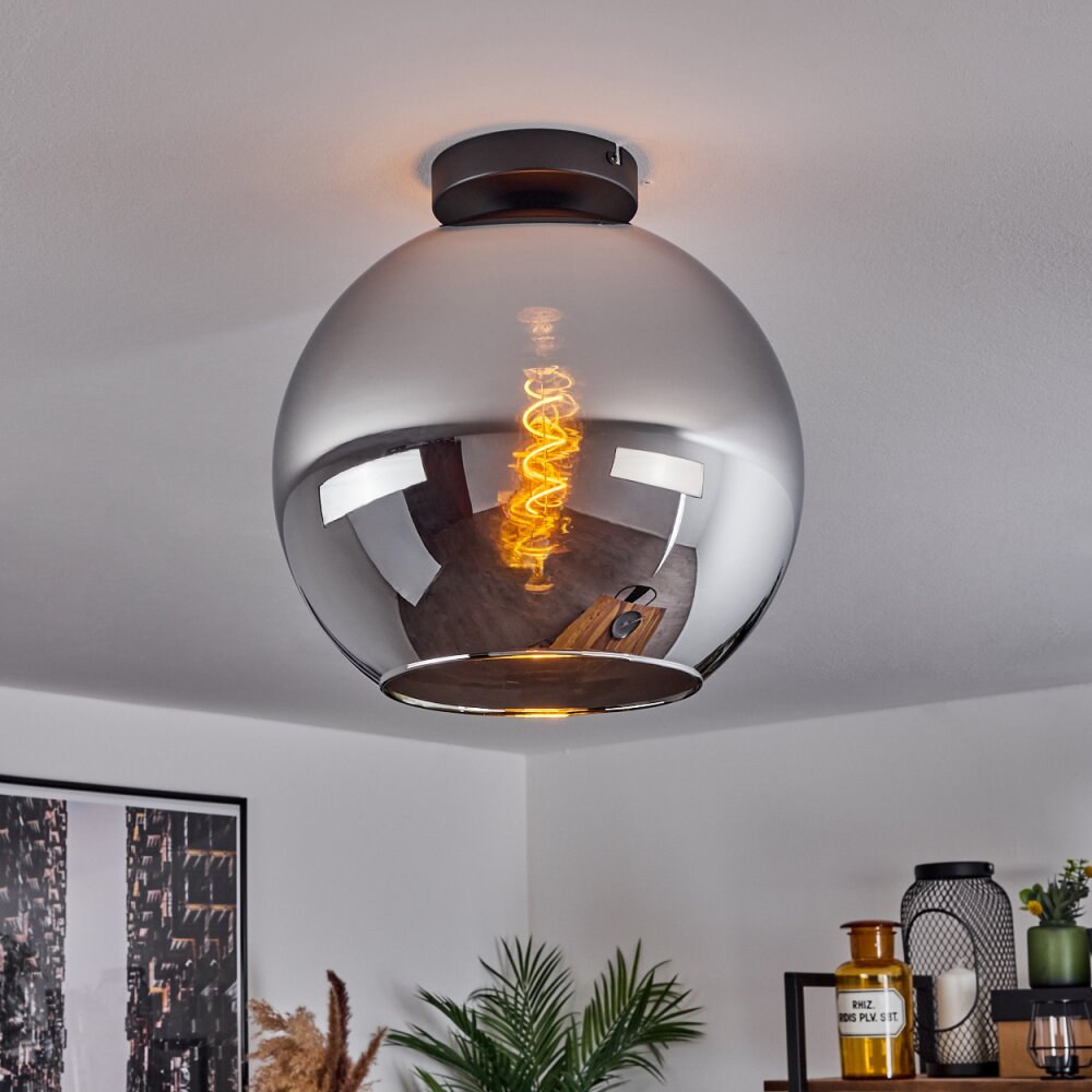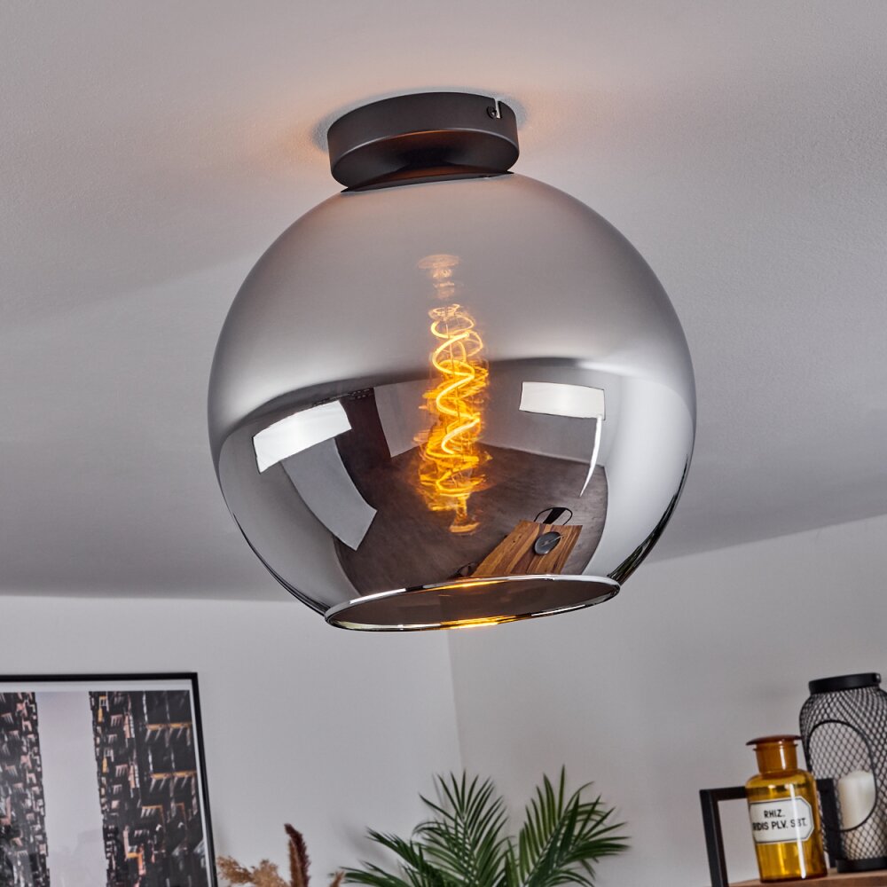 Koyoto Plafondlamp Glas 30 cm Chroom, Rookkleurig, 1-licht