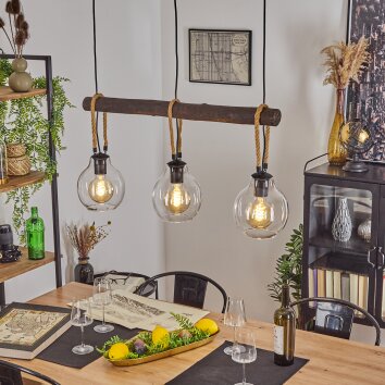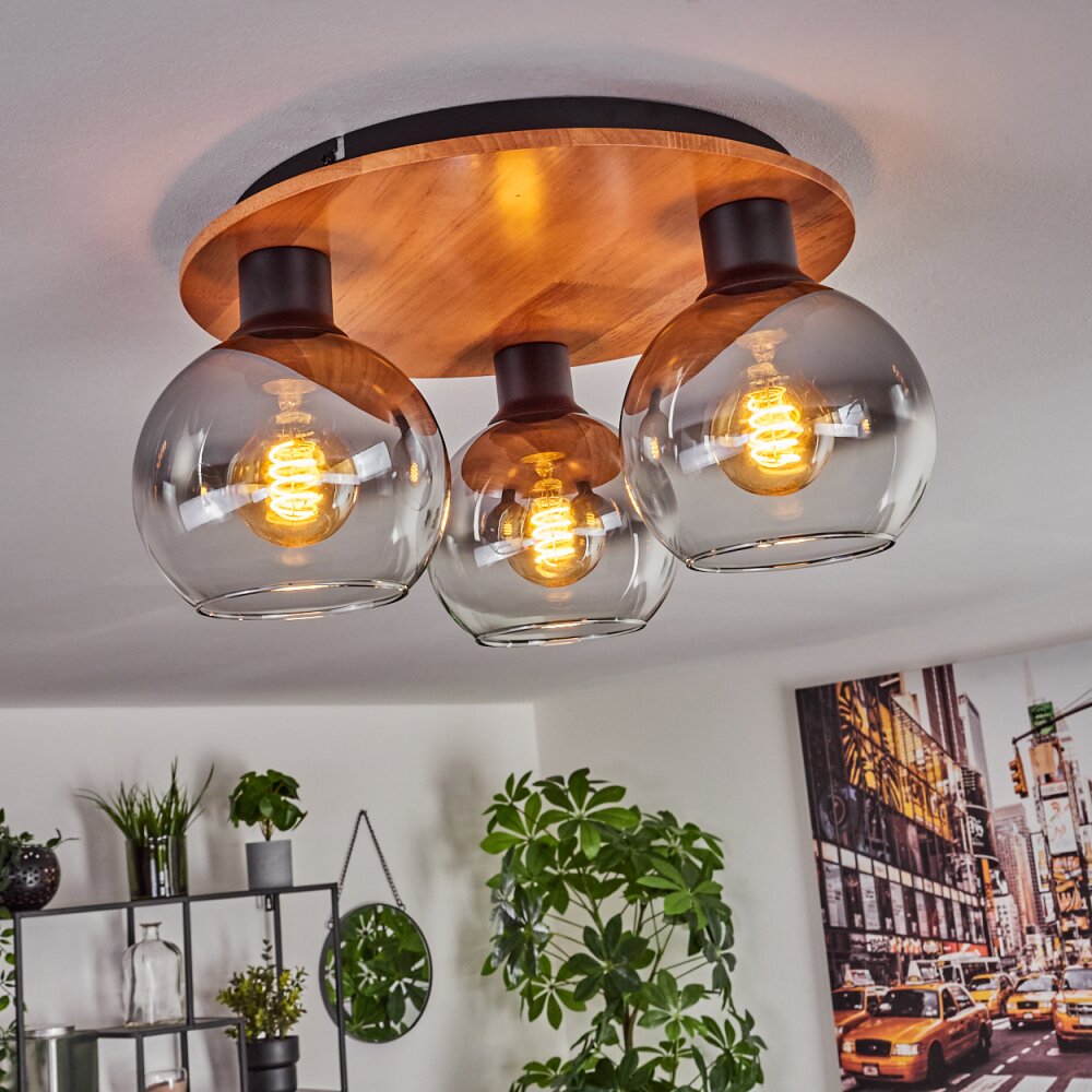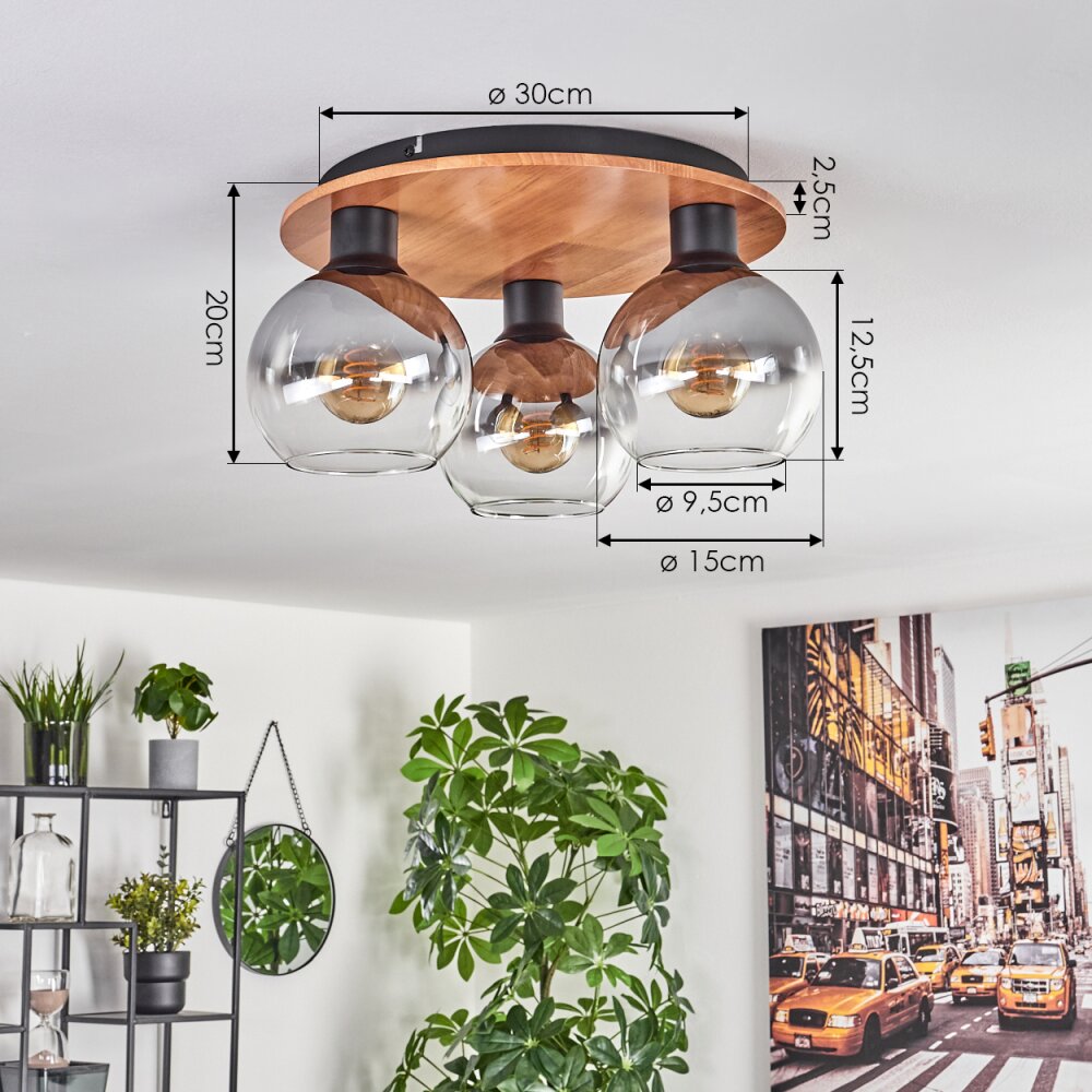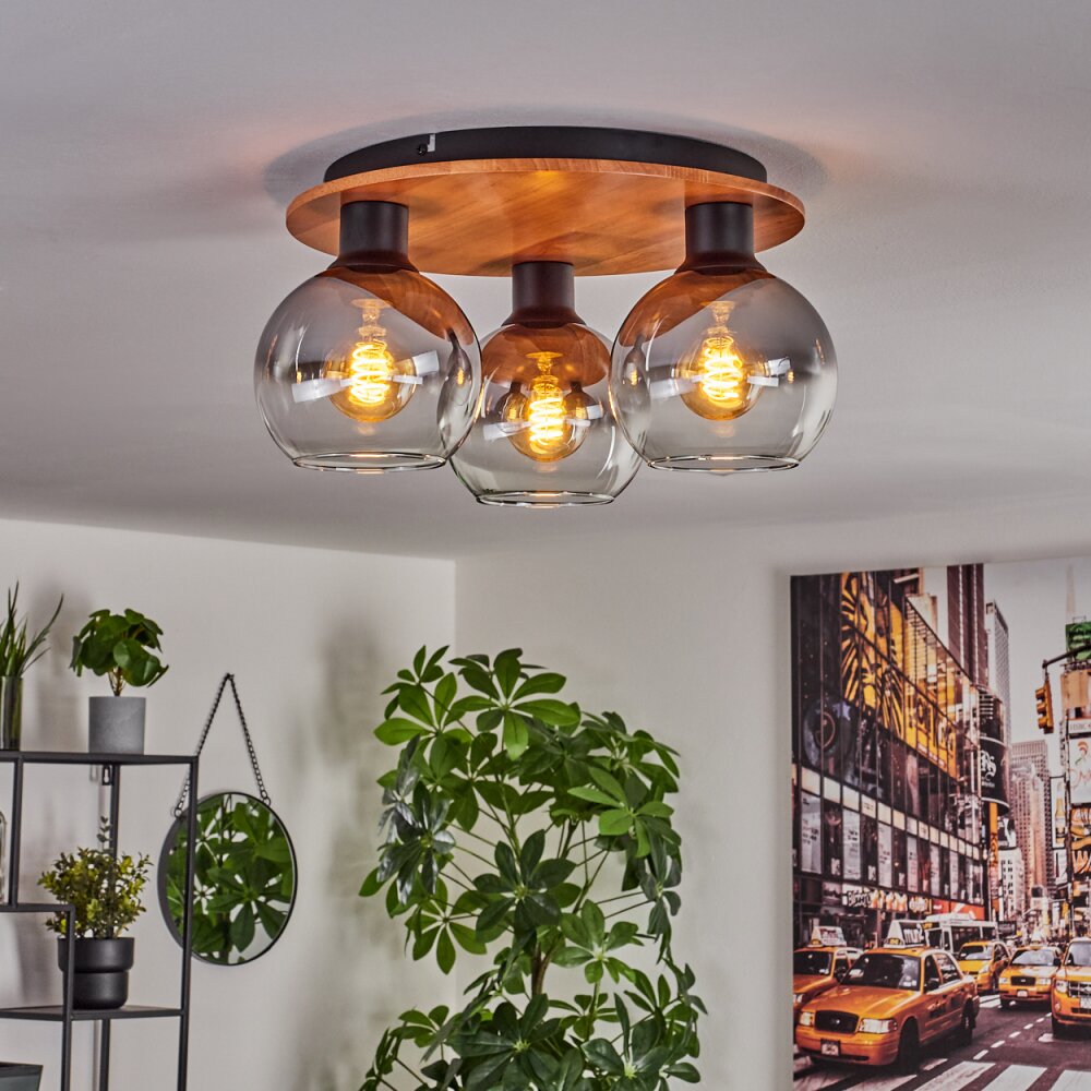 Koyoto Plafondlamp - Glas Natuurlijke kleuren, Zwart, 3-lichts