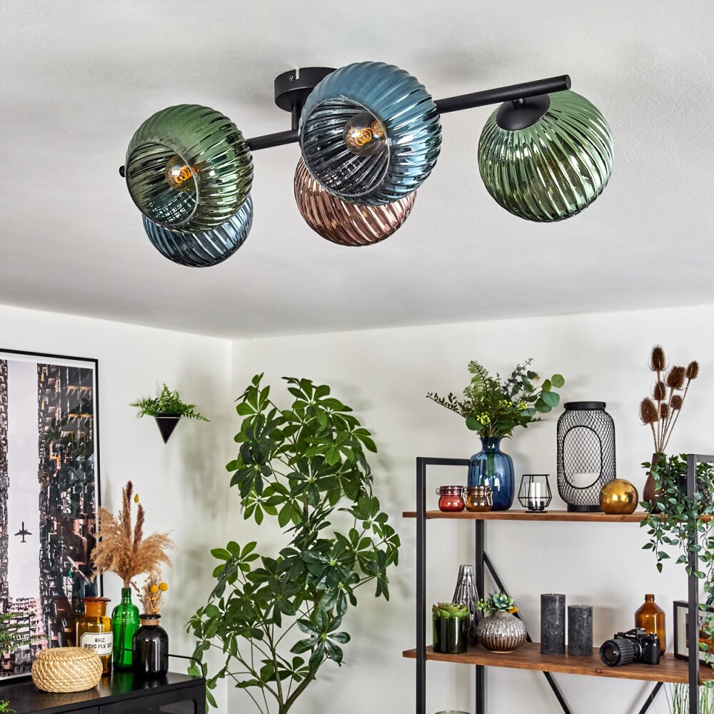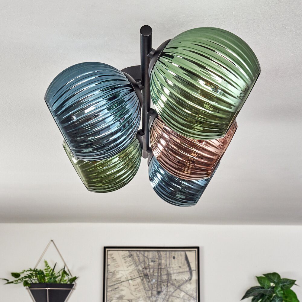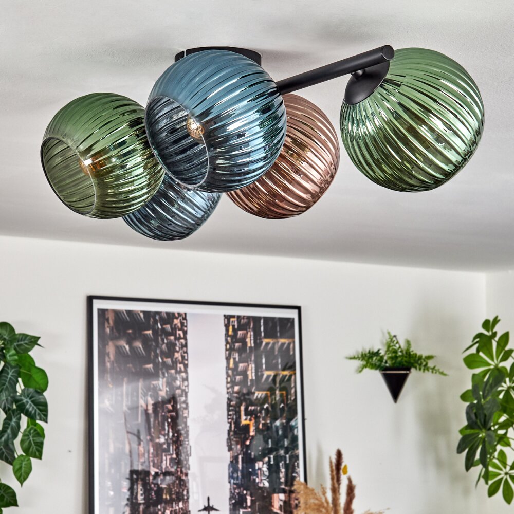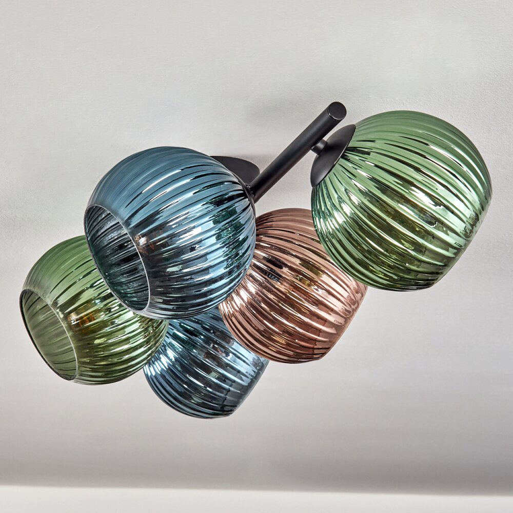 Koyoto Plafondlamp, Kogellampje Blauw, Groen, Koperkleurig, 5-lichts