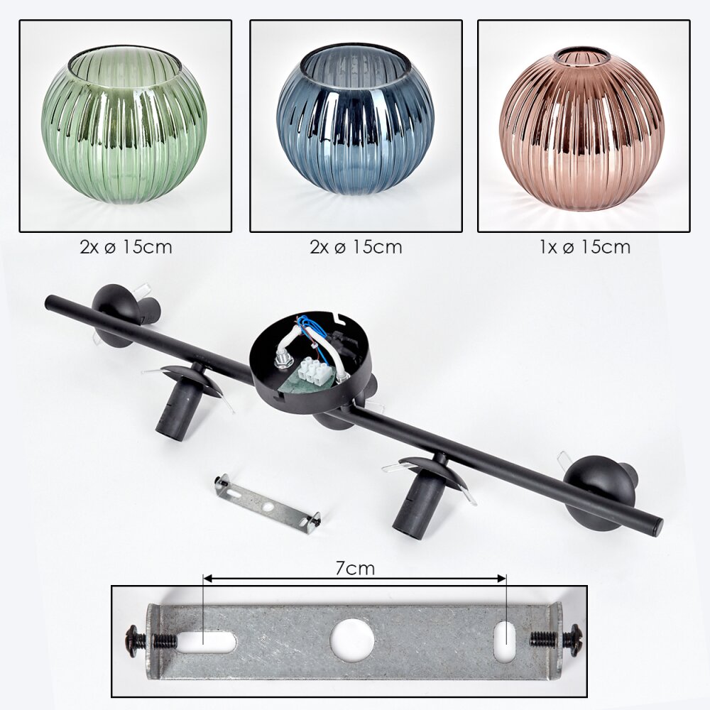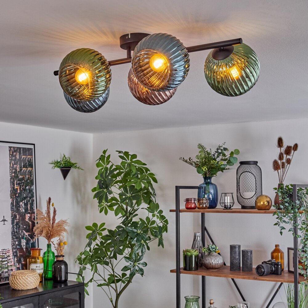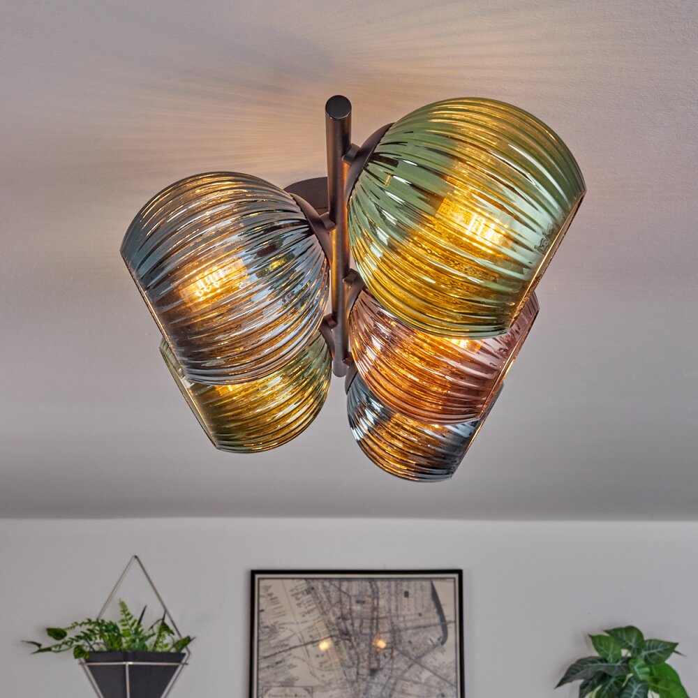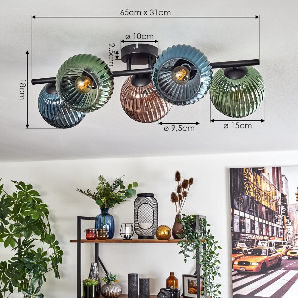 Koyoto Plafondlamp, Kogellampje Blauw, Groen, Koperkleurig, 5-lichts