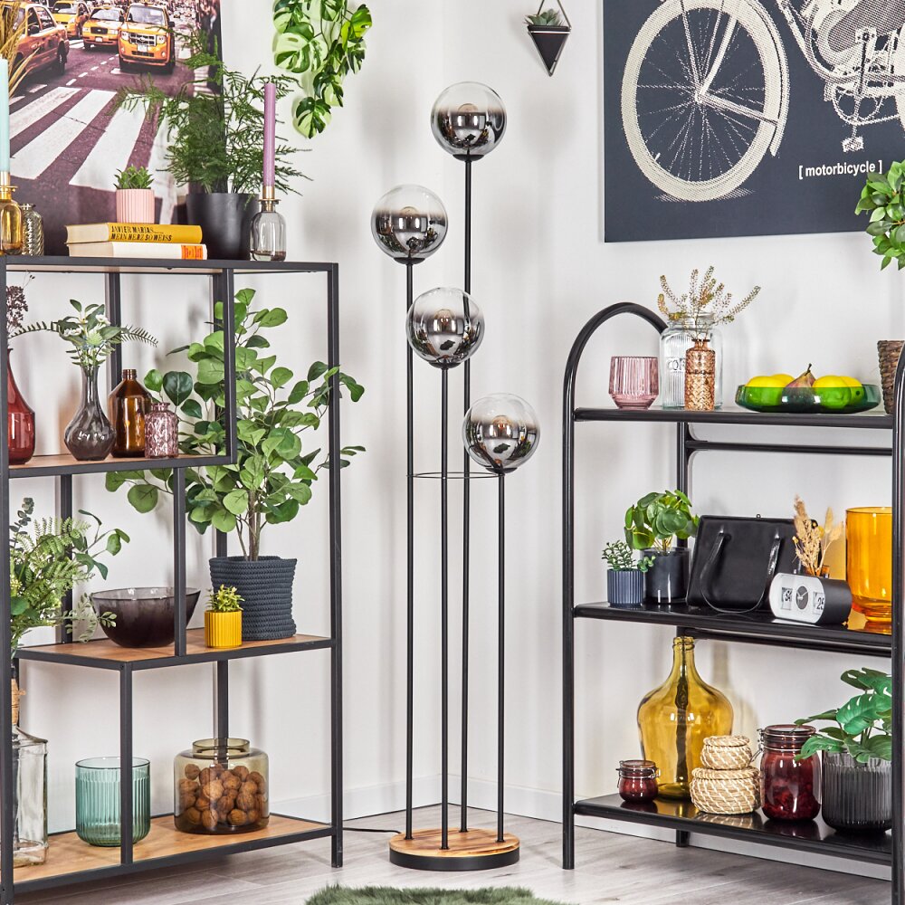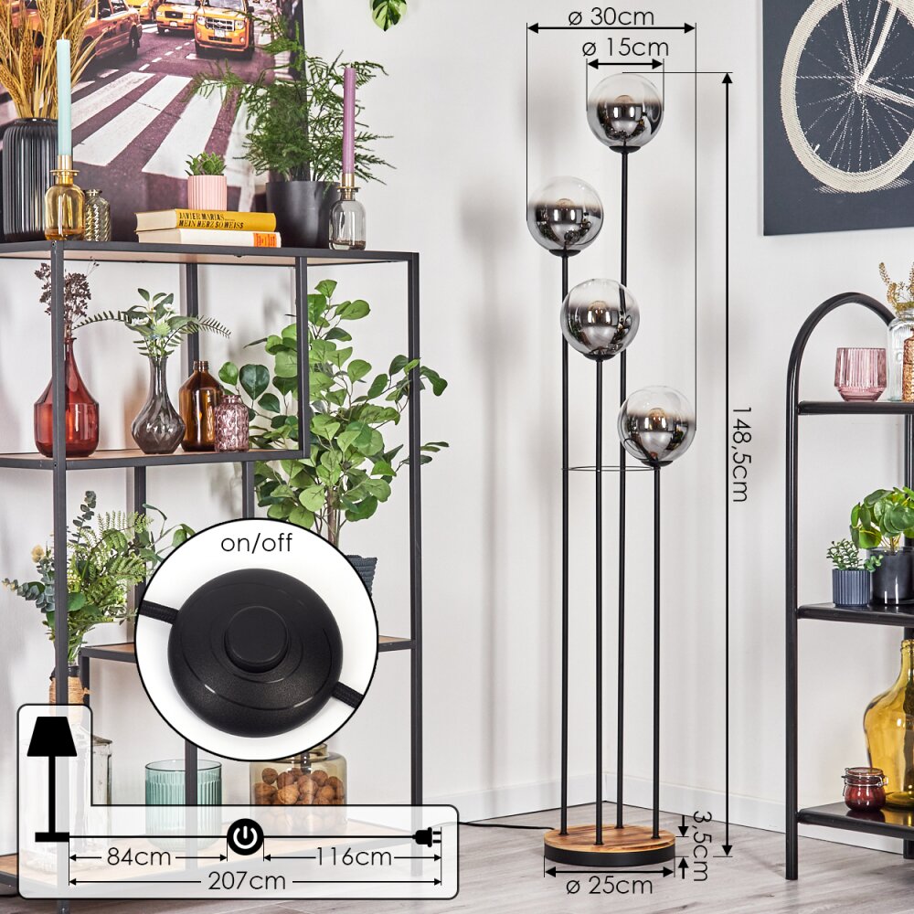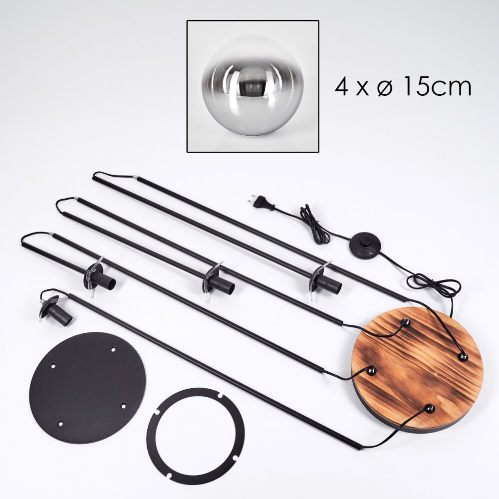 Koyoto Staande lamp 25 cm Hout licht, Zwart, 4-lichts